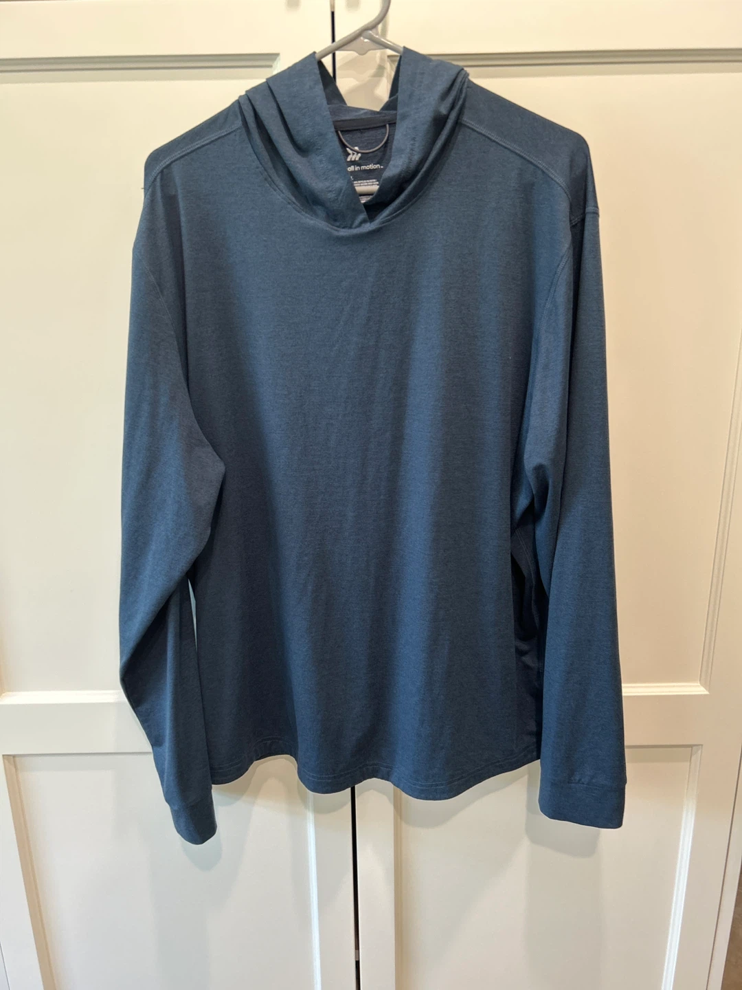 Selling an All in Motion hoodie in size XL. It's a nice blue colour and made from 86% recycled polyester and 14% spandex. Perfect for workouts or just lounging around!