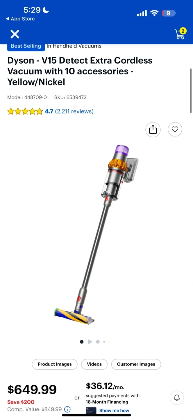 Selling a Dyson V15 Detect Extra cordless vacuum in yellow and nickel! Comes with 10 accessories. Originally bought for $659.76.