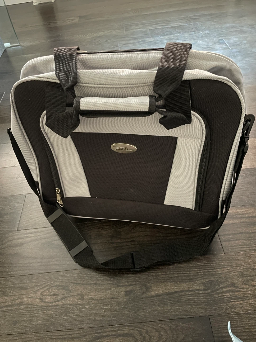 Selling a carrier bag in black and grey on wheels. It has a shoulder strap and handles for easy carrying. Great for travel or everyday use! Porch pick up Yonge and 16th