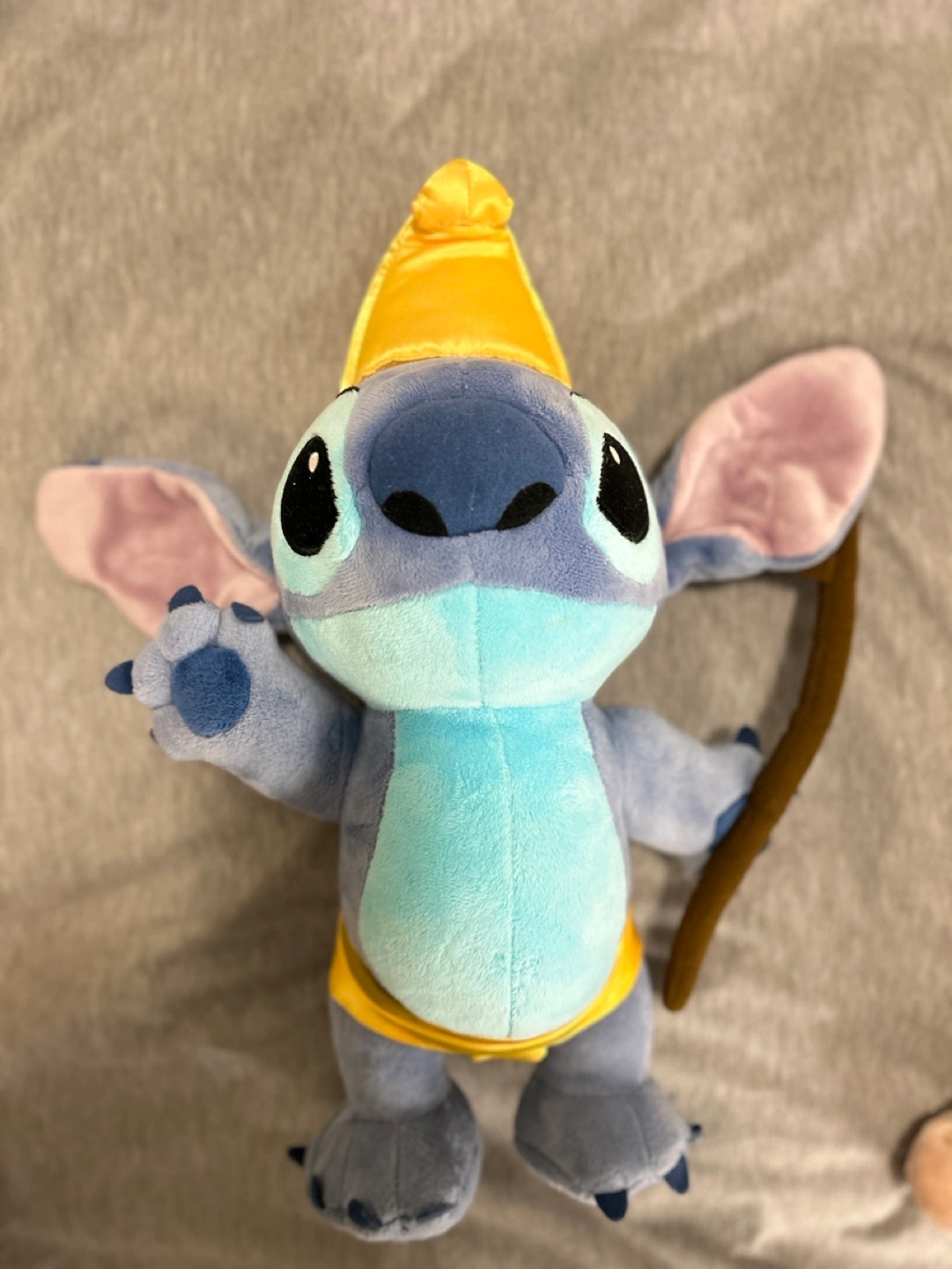 Selling a super cute Real Disney Stitch plush! He's wearing a yellow hat and holding a stick. Perfect for any Lilo & Stitch fan or anyone who loves a cuddly friend