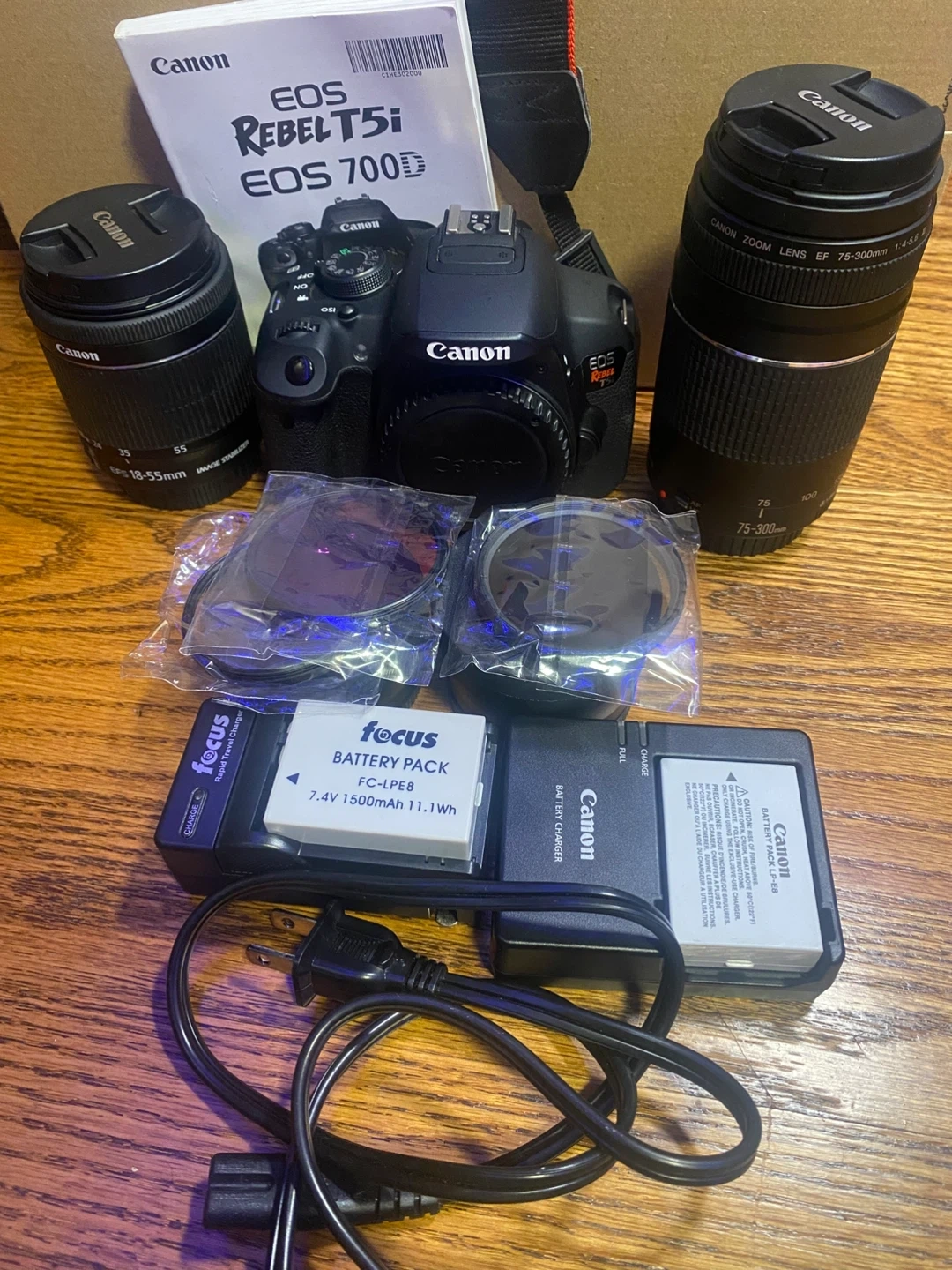Selling a Canon EOS Rebel T5i/EOS 700D camera(canon T5i). Included are the camera body, two lenses (EF-S 18-55mm and EF 75-300mm), battery, charger, strap, and the original manual. Great for anyone looking to get into photography!