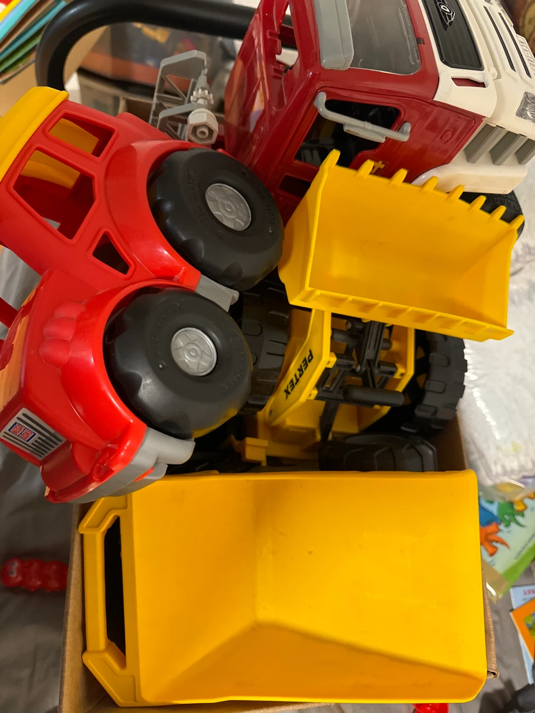 Box of vehicle toys