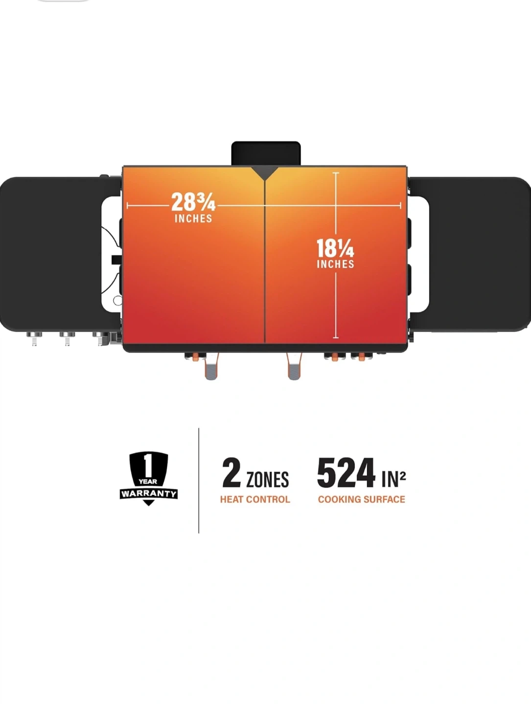 Selling a brand new Blackstone Griddle 1962 Uses H Style Burner For Even Heating. It has a 28 inch length and is rectangular, made of stainless steel. It also features a rear grease management system and electric igniter system, with a patio styled hood and air fryer. Originally bought for $1,192.95+gst and still in the box.