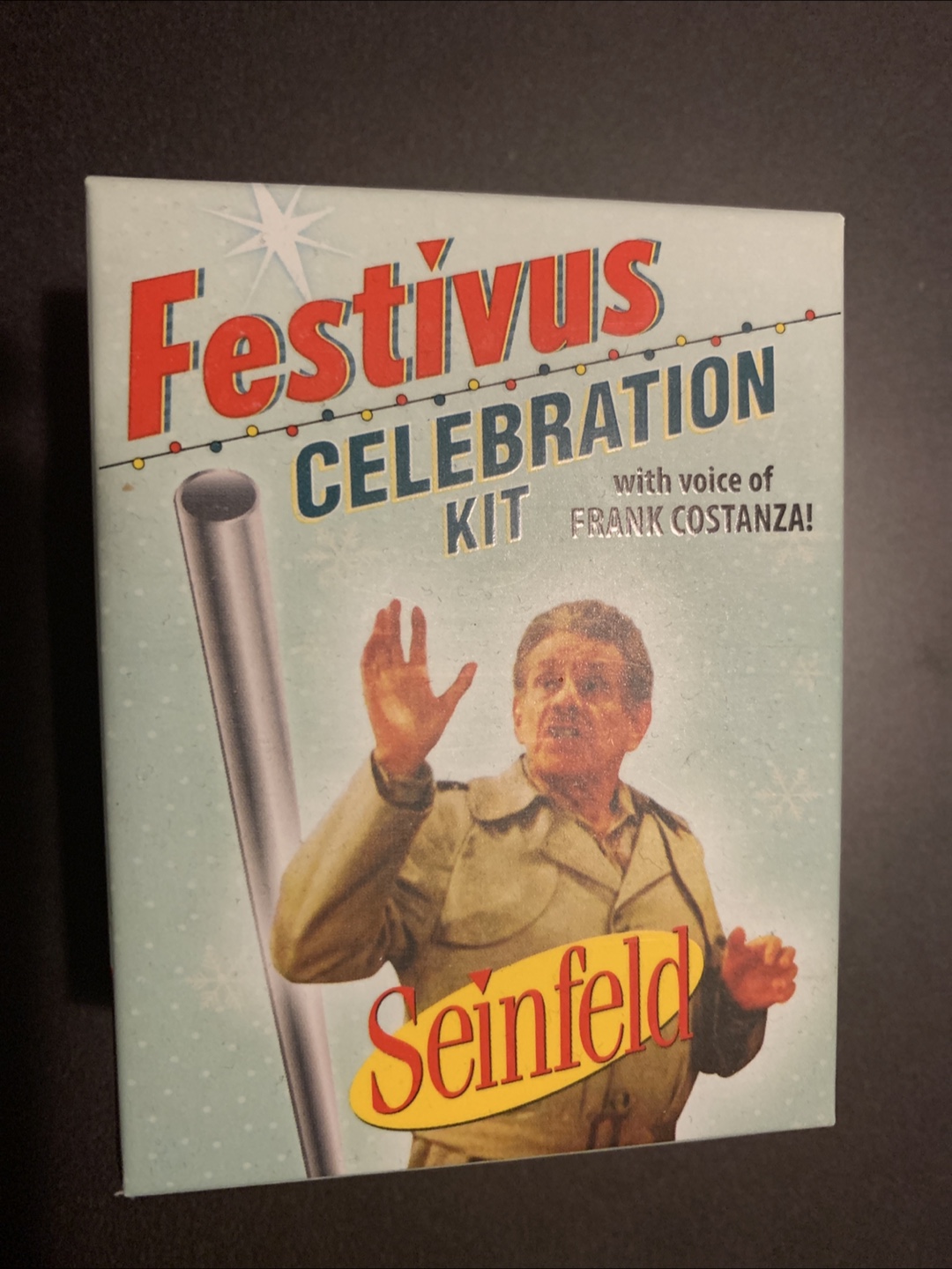 Buy & SellSeinfeld Festivus Celebration KitSeinfeld Festivus Celebration Kit$15Selling a Seinfeld Festivus Celebration Kit! It includes the Festivus pole and features the voice of Frank CostanzaWHERE TO MEETPickup onlyView MapSELLERDavidRiverside S200 reviews0 chats·0 favorites·20 viewsSEND CHAT TO SELLERHi David! I’m interested in your listing.Hi David! I’m interested in your listing.Get the Karrot app to chatSign In to chat