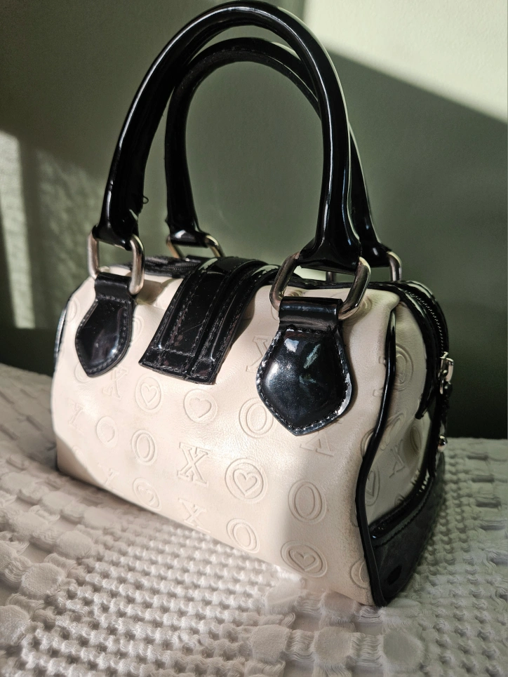 Super cute cream and black mini purse in great condition! It has a fun Y2K style pattern with hearts, circles, Xs and Os. Perfect for adding a little vintage flair to your outfit. bought for $80!