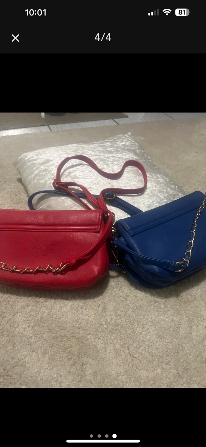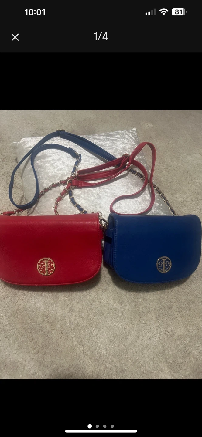 Selling two crossbody bags! One is a vibrant red and the other is a beautiful blue. Both are in great condition and ready for a new home
