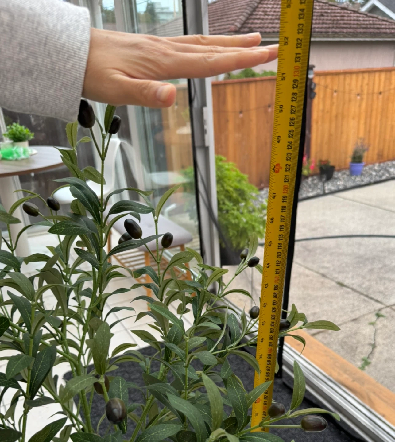 Add a touch of greenery to your space with this artificial olive tree! It comes in a cute woven basket, perfect for any room. The tree stands approximately 132 cm tall and the basket is about 16 cm wide.