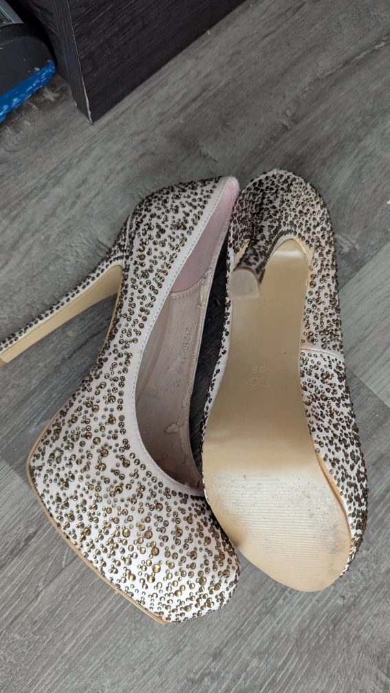 Size 39 and worn just couple of times. Slight wear in the insoles (frankly due to storage) but can still be worn.