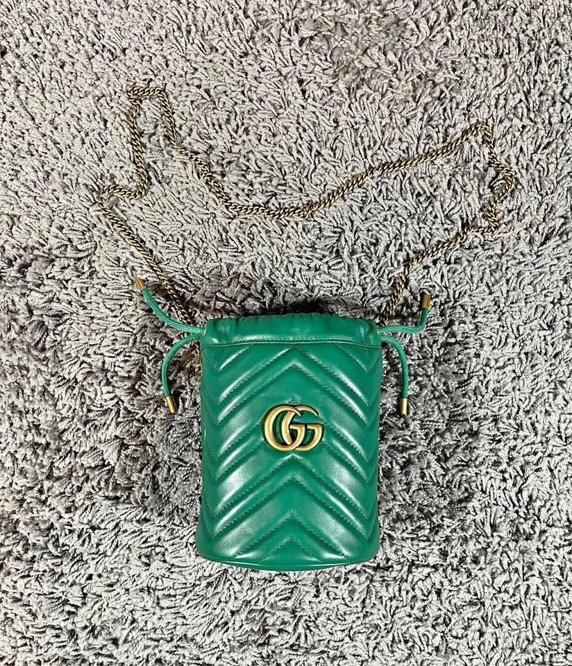 Authentic SSENSE Gucci Mini GG Marmont Bucket Bag Green Leather