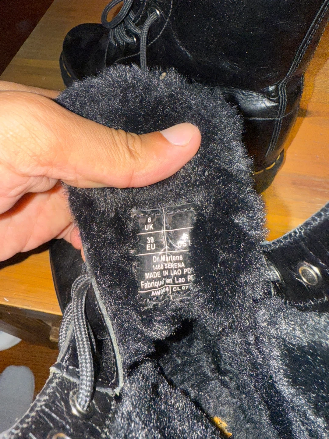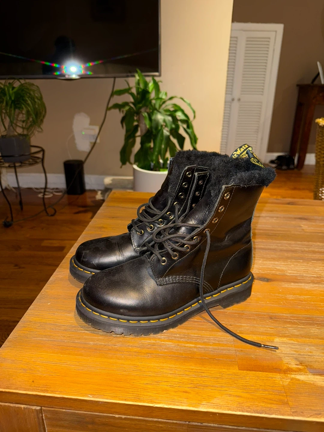 Selling a pair of Dr. Martens 1460 Serena boots in black. They are fur lined for extra warmth and comfort. The size is US 8 / UK 6 / EU 39. These boots are in good condition and ready for a new home!