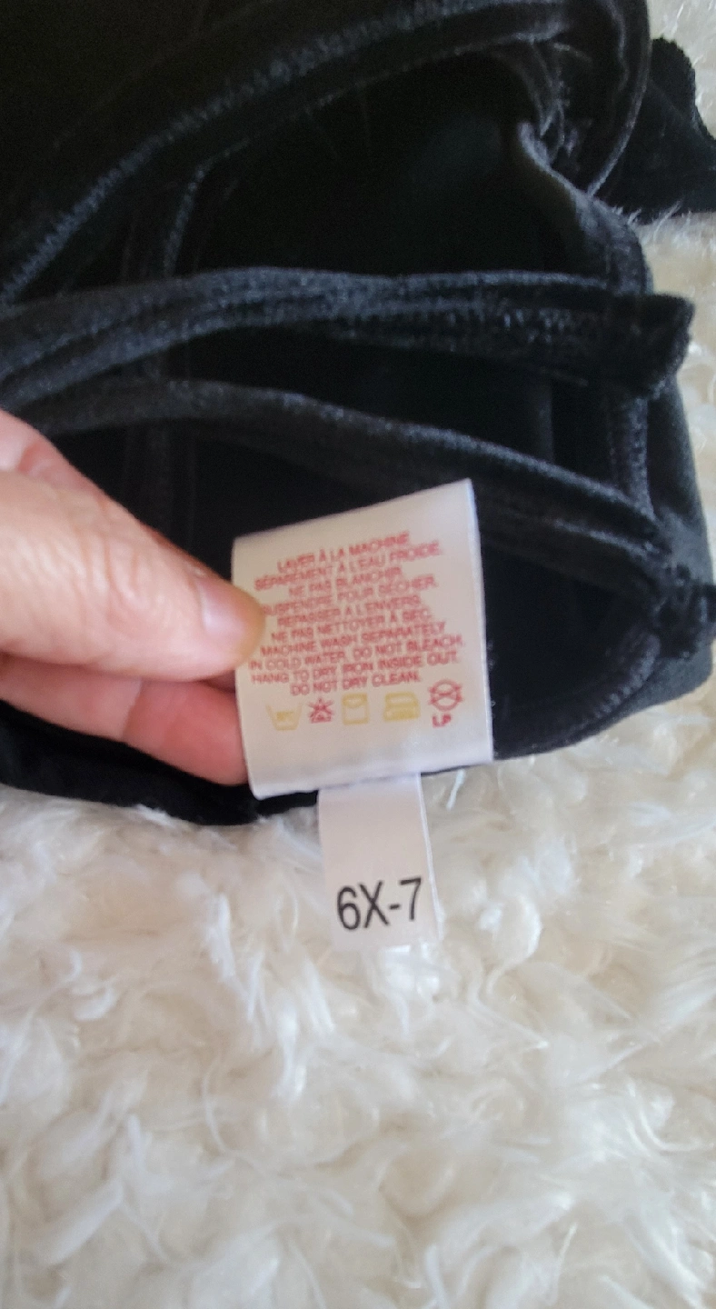 Selling a cute black velvet ice skating / dancing dress for girls. It's in great condition and perfect for lessons or practice! The size is 6X-7.