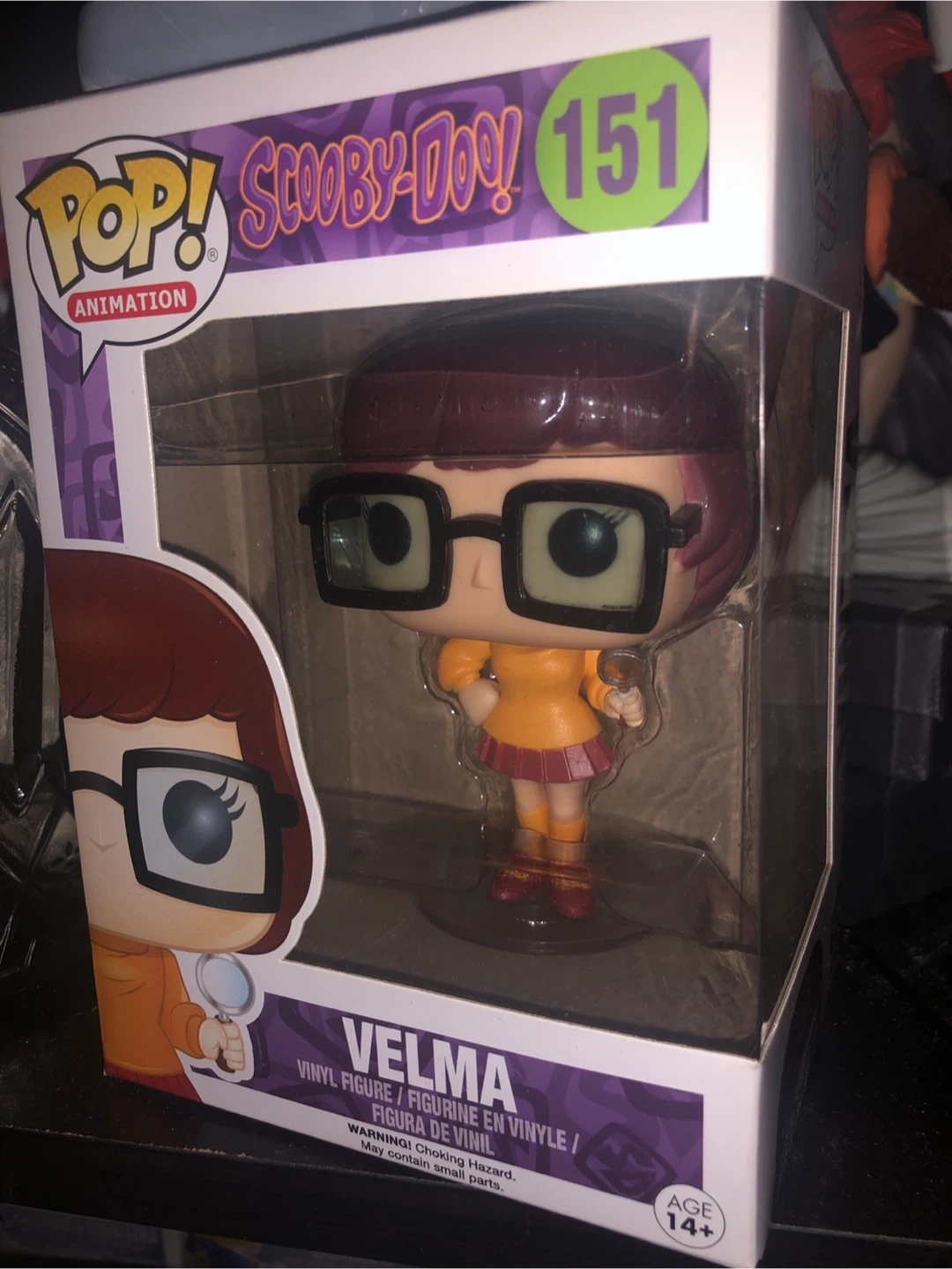 Selling a Funko POP! Animation figure of Velma from Scooby-Doo! This is figure #151 and comes in the original box. It's a vinyl figure and is suitable for ages 14+