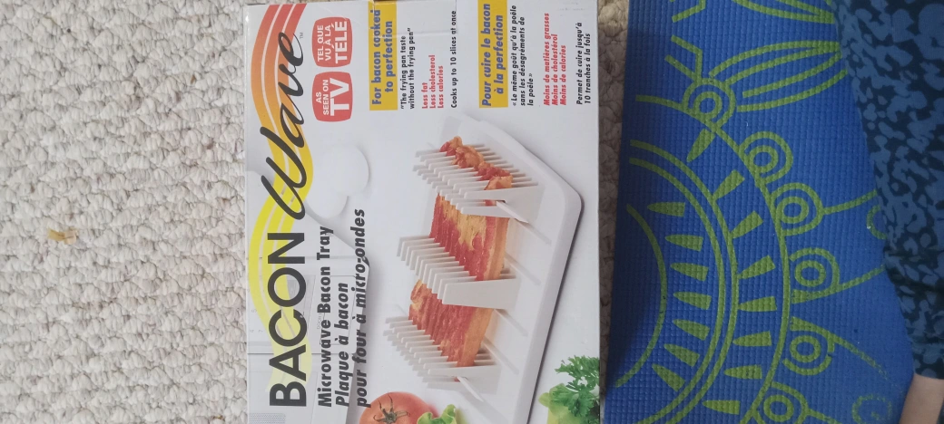 Get perfectly cooked bacon in the microwave with this Bacon Wave tray! It's brand new in the box and ready to help you make less fatty and cholesterol-free bacon. Cooks up to 10 slices at once, making it super convenient. Enjoy crispy bacon without the mess of a frying pan