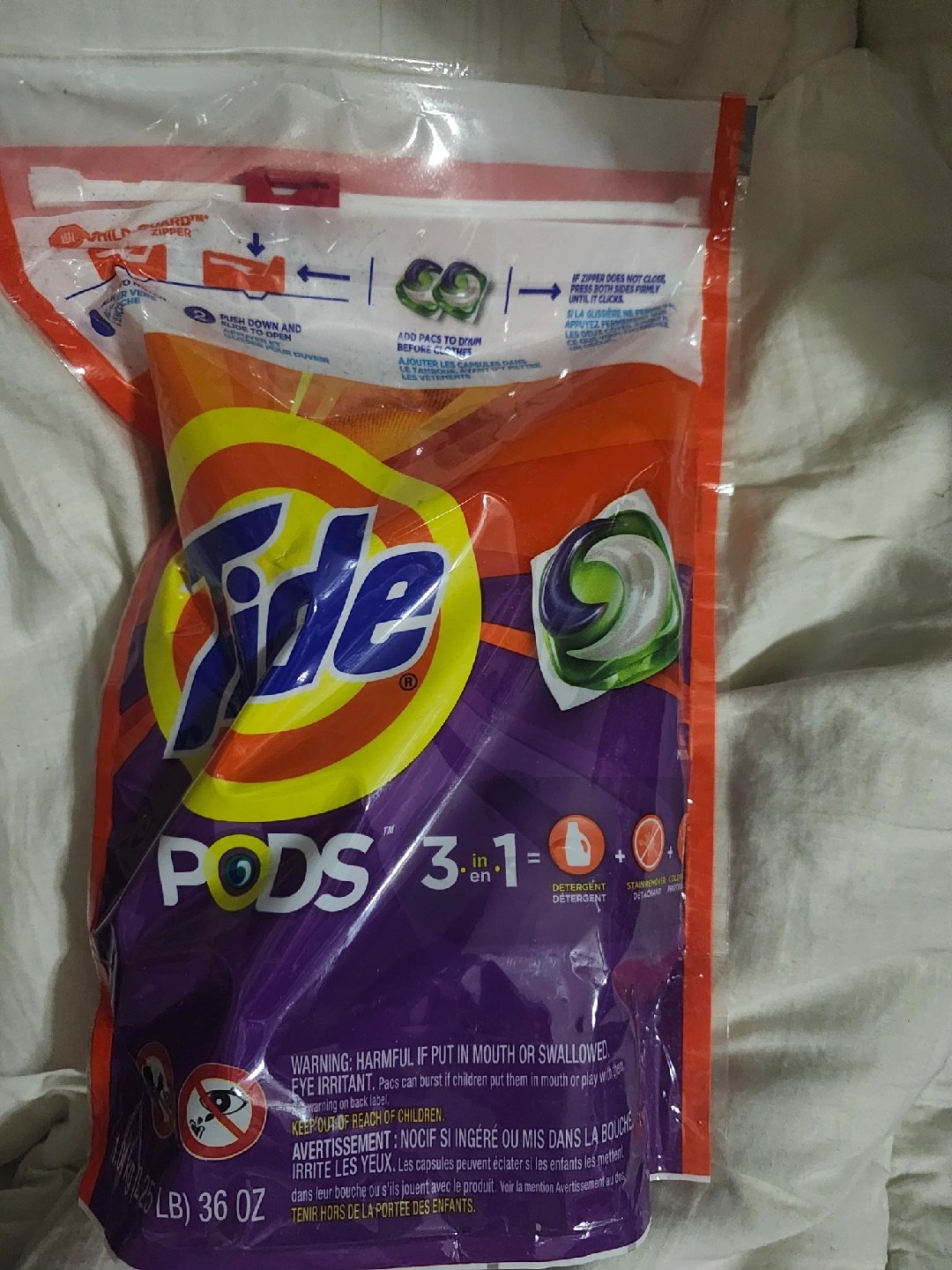 Selling a bag of Tide Pods 3-in-1 laundry detergent! This bag contains 36 oz of the popular detergent pods, perfect for getting your clothes clean and fresh. They combine detergent, stain remover, and color protector in one convenient pod. Just toss a pod into your washing machine before adding clothes!
