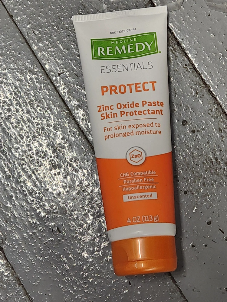 878Zinc Oxide Paste Skin Protectant usually for diaper rash... could also be good in chafed areas like the thighs. It's 4 oz (113 g) and unscented. It's designed for skin exposed to prolonged moisture and is CHG compatible, paraben-free, and hypoallergenic. expires 2/2026