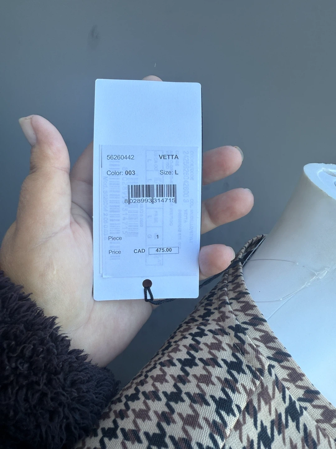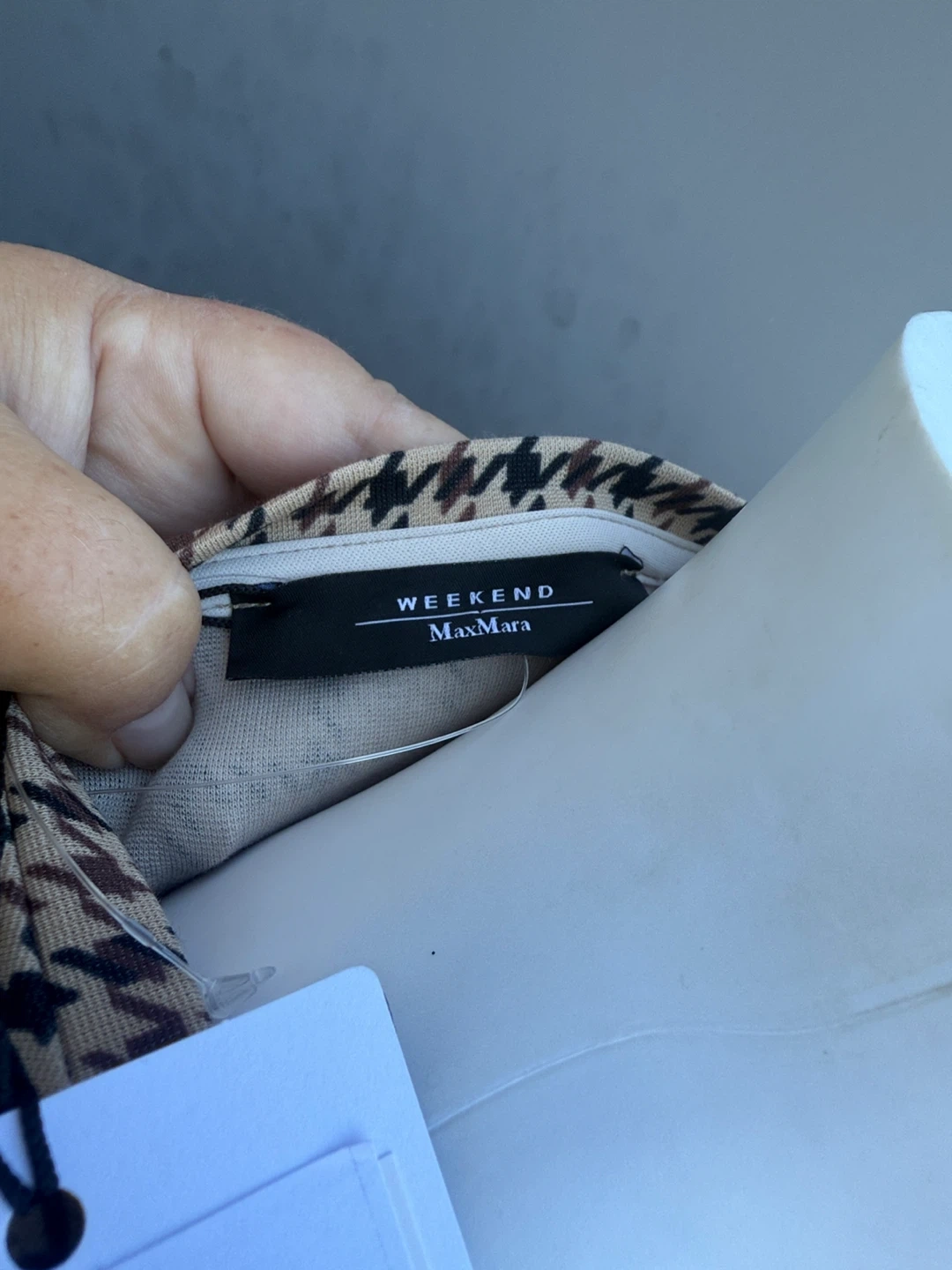 Selling a Weekend Max Mara 'Vetta' dress in size L. It features a stylish houndstooth pattern. Originally bought for $475 CAD