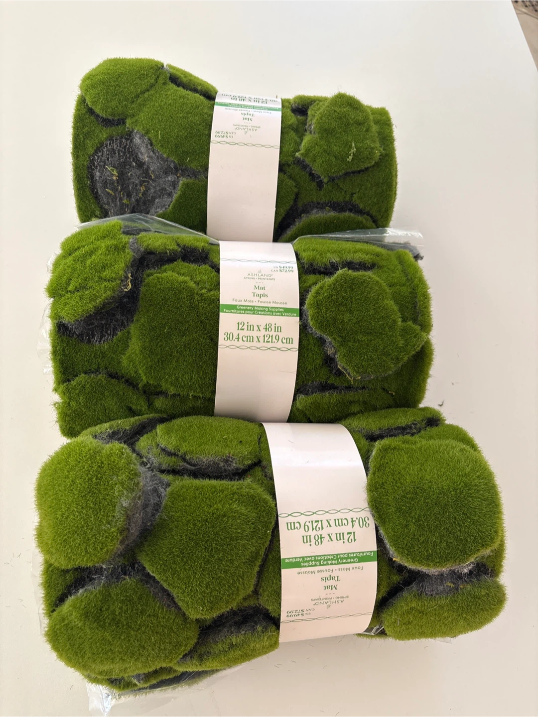 Selling 3 Ashland moss mats perfect for adding a touch of greenery to your space! This mat measures 12 inches by 48 inches (30.4 cm x 121.9 cm). Originally bought for $72.99 CAD each it's a great find for your crafting or decorating needs