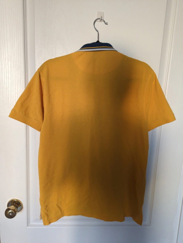 Selling a ONE Life polo shirt in size medium! It features a unique colour block design with yellow, white, and navy. Great for a casual look!
