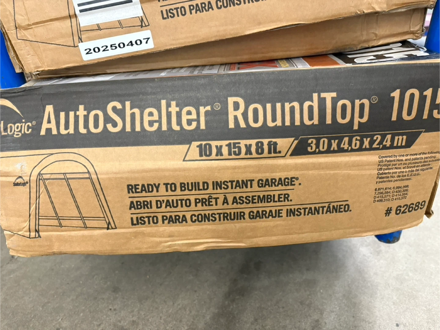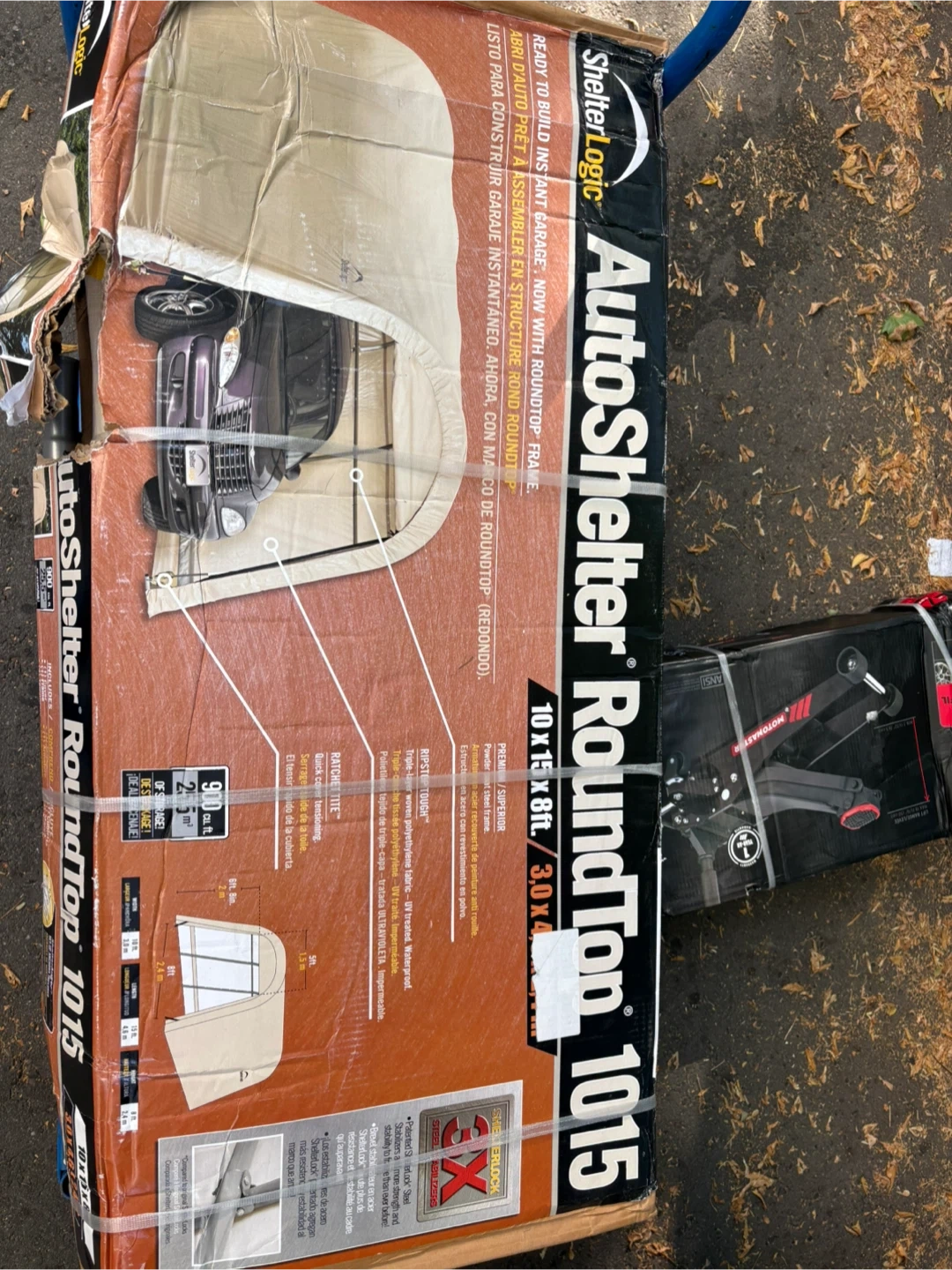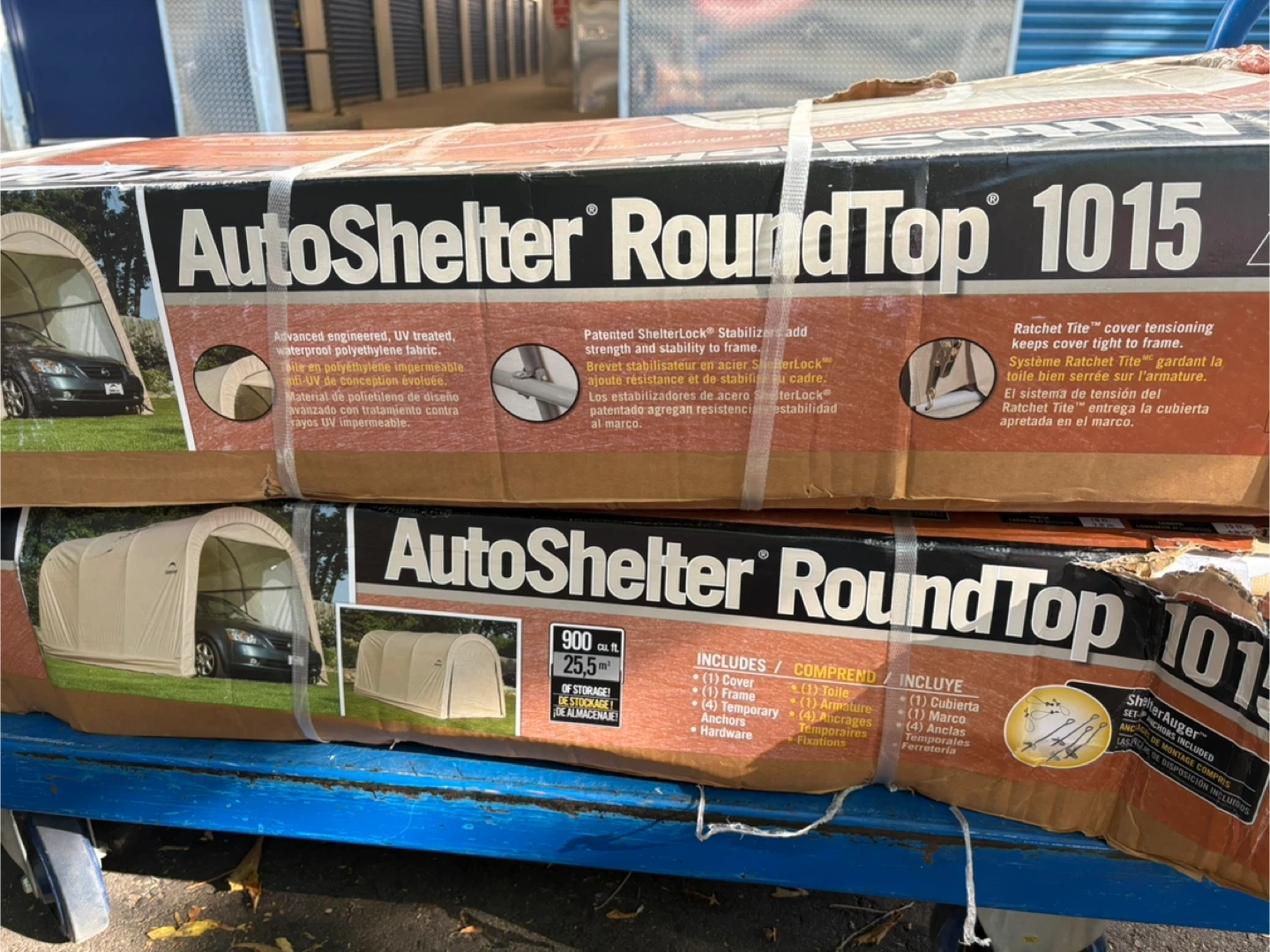 Selling an AutoShelter RoundTop 1015 instant garage. It's ready to build and measures 10x15x8 ft (3.0 x 4.6 x 2.4 m). Includes cover, temporary anchors, hardware, and all necessary fixtures to get it set up quickly. Perfect for protecting your vehicle or equipment from the elements!