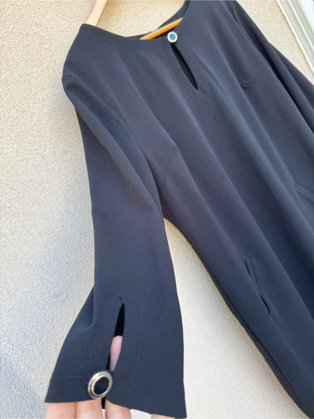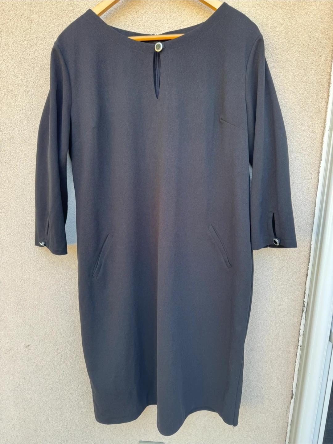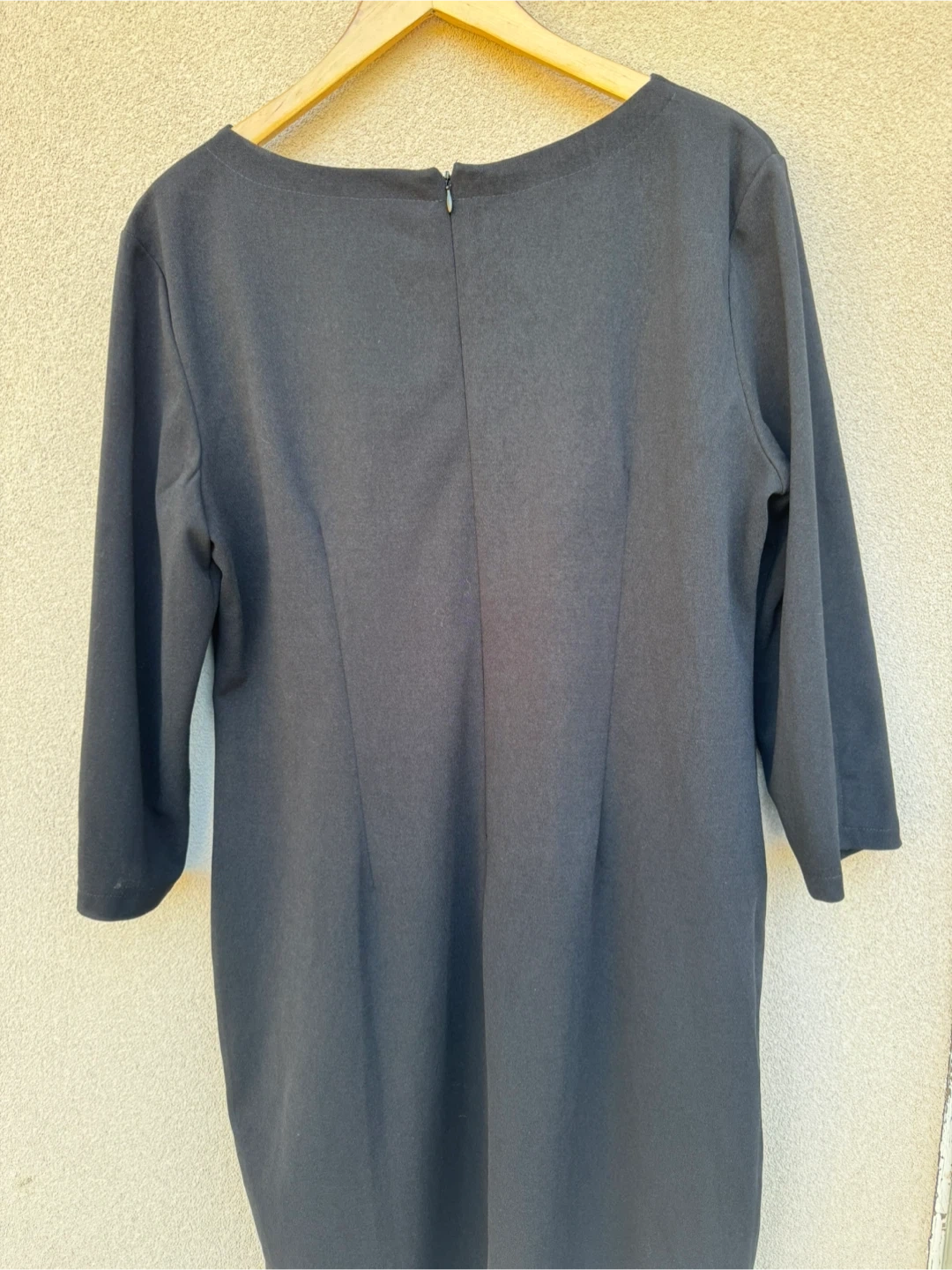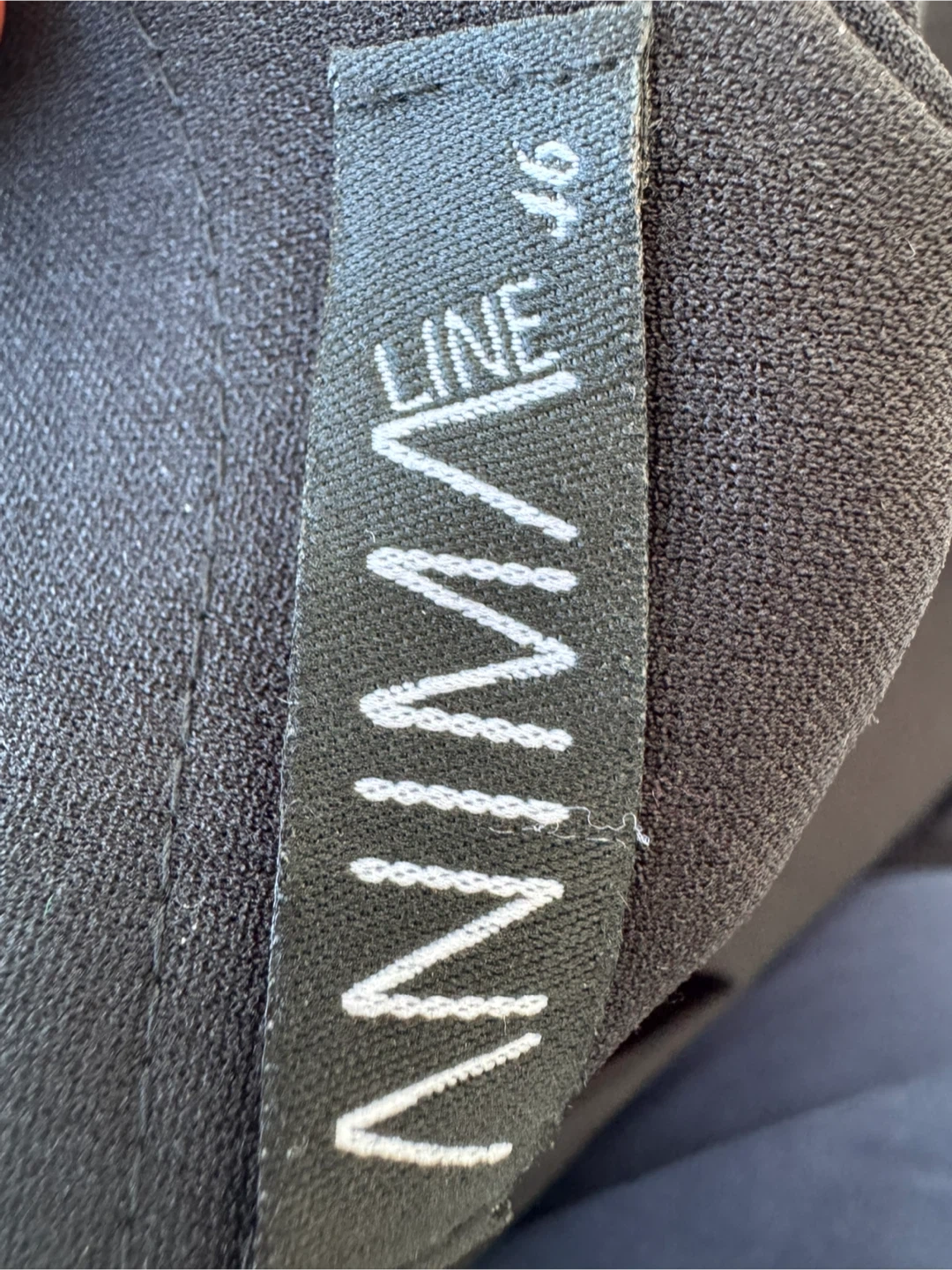 Selling a stylish black dress from Line The Label in size 16. It's in great condition and features a unique neckline and sleeve detail. Perfect for any occasion!