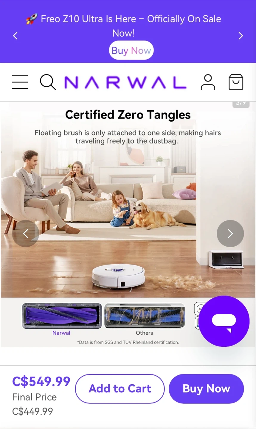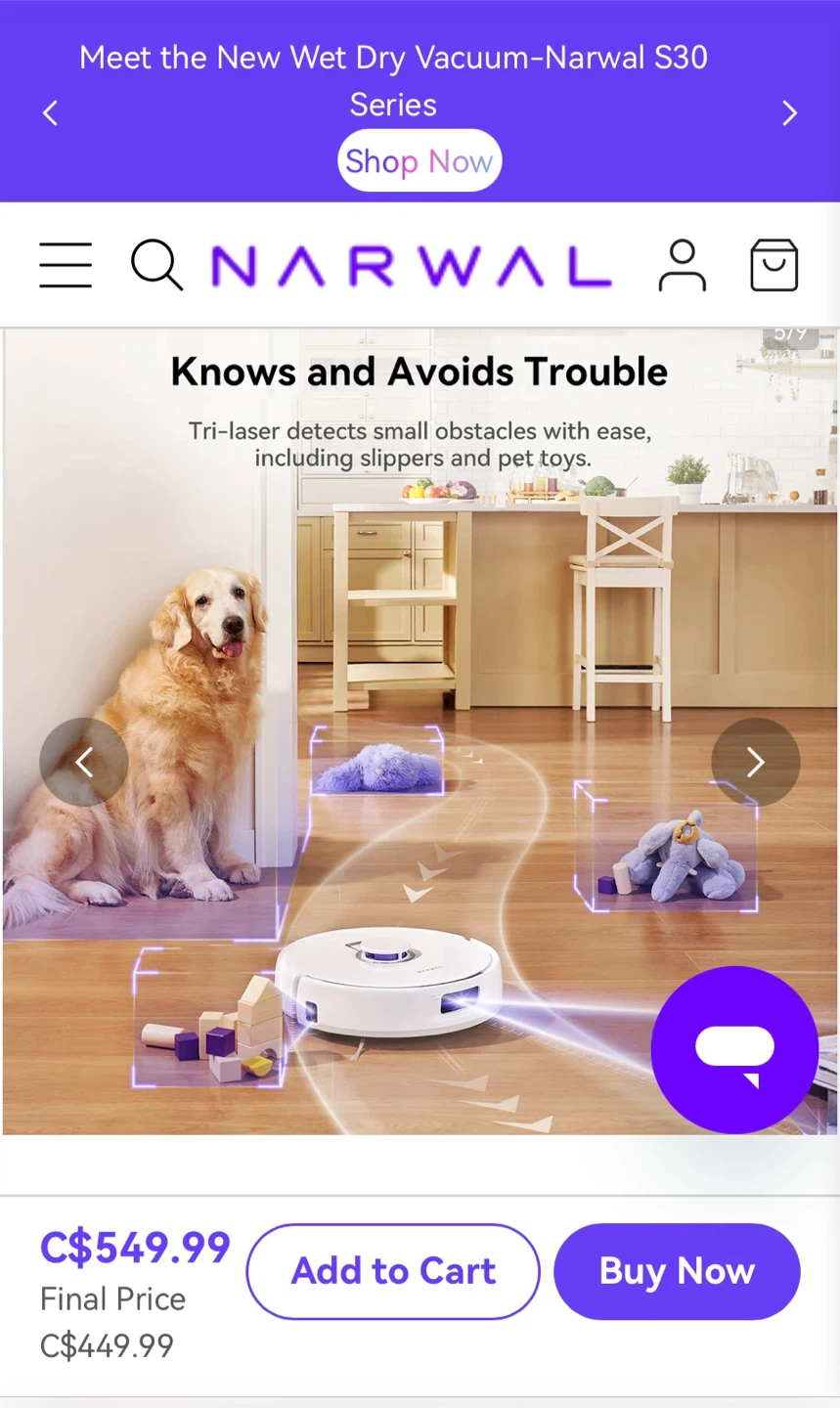 Knows and Avoids Trouble with Tri-laser detecting small obstacles. Perfect for homes with pets and kids!