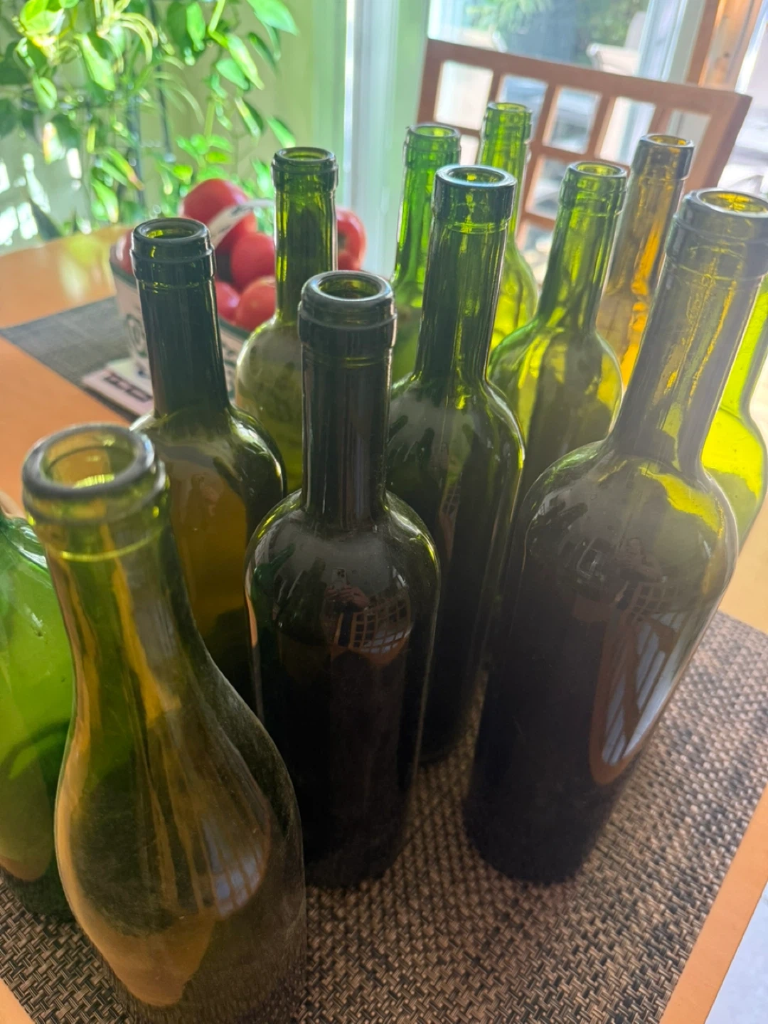 Selling 54 new wine bottles. Mostly dark green & few white ones. They're ready for your next home brewing or crafting project!