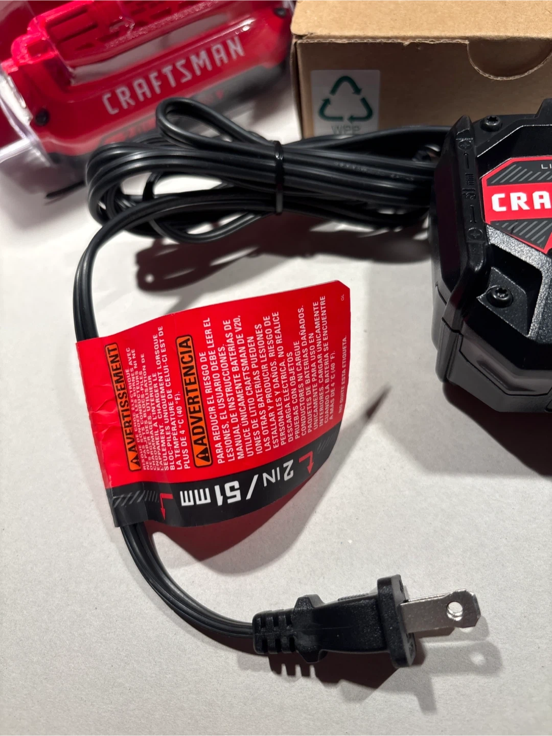 Selling a Craftsman V20 Lithium Ion battery charger. New and ready to power your tools! The charger comes with its original box