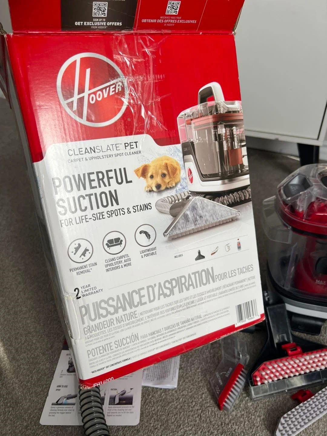 Description: Hoover Upholstery Spot Cleaner Model FH14000 used 1 time, original box and accessories included.