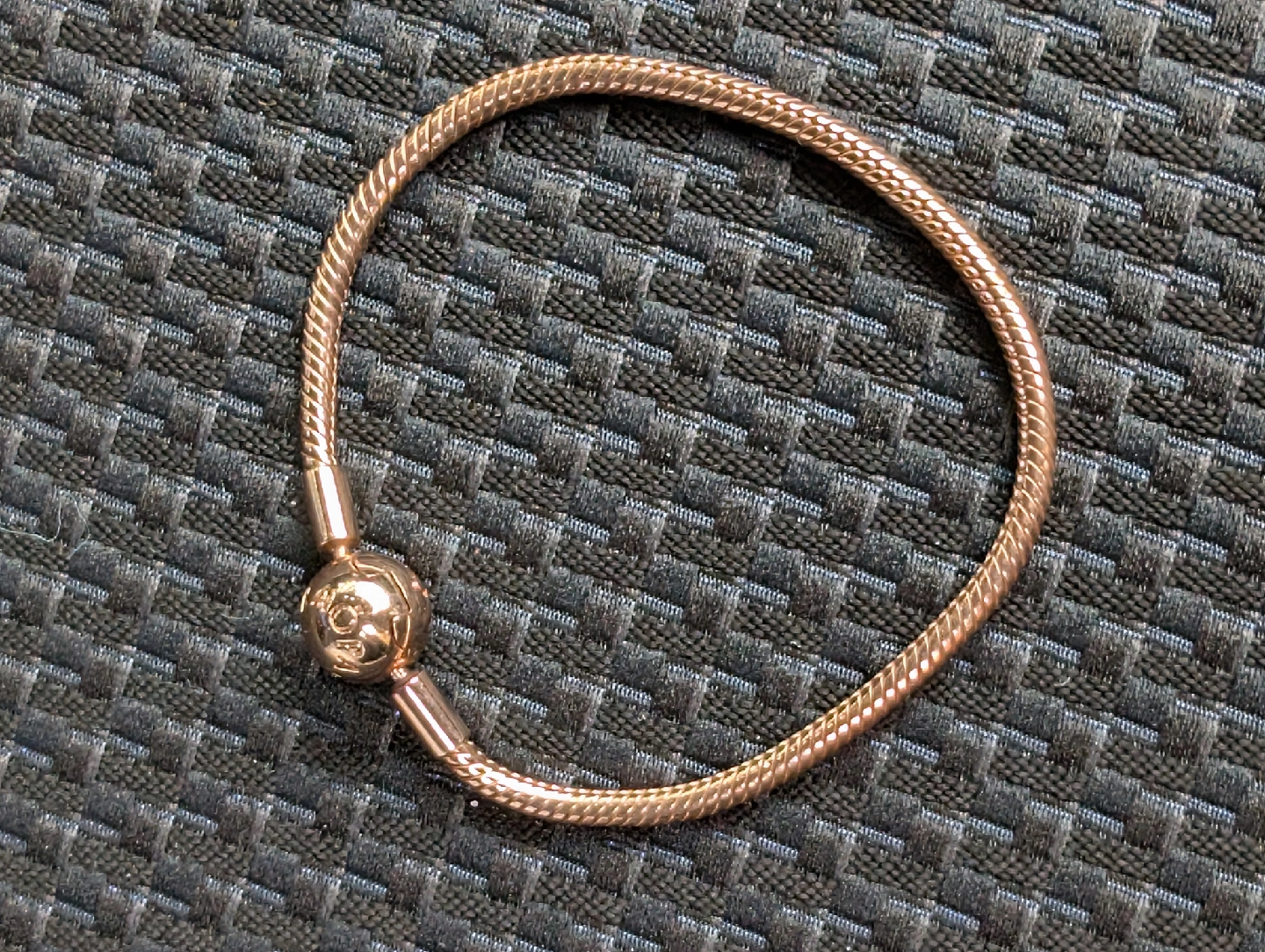 Selling a beautiful Pandora moment 14 K rose gold - plated snake chain bracelet. Start your very own Pandora story with this sleek 14 K rose gold - plated snake chain bracelet.