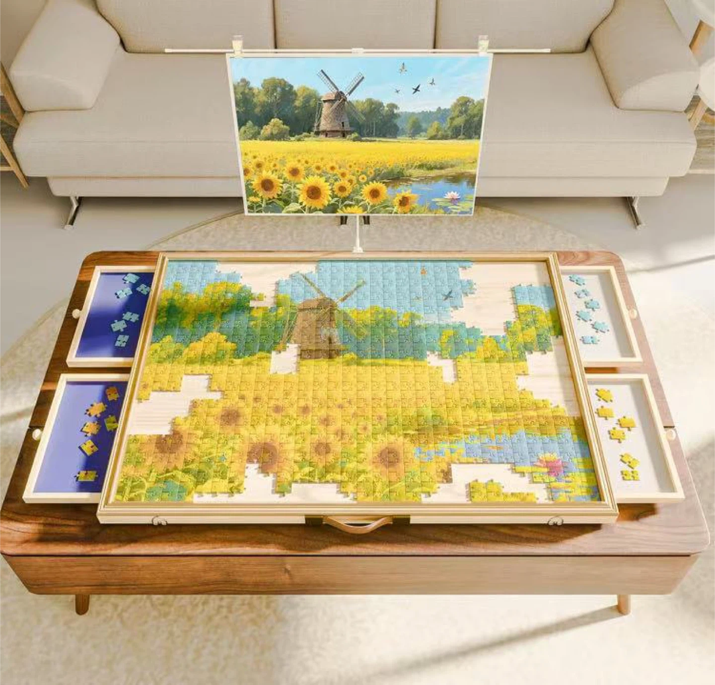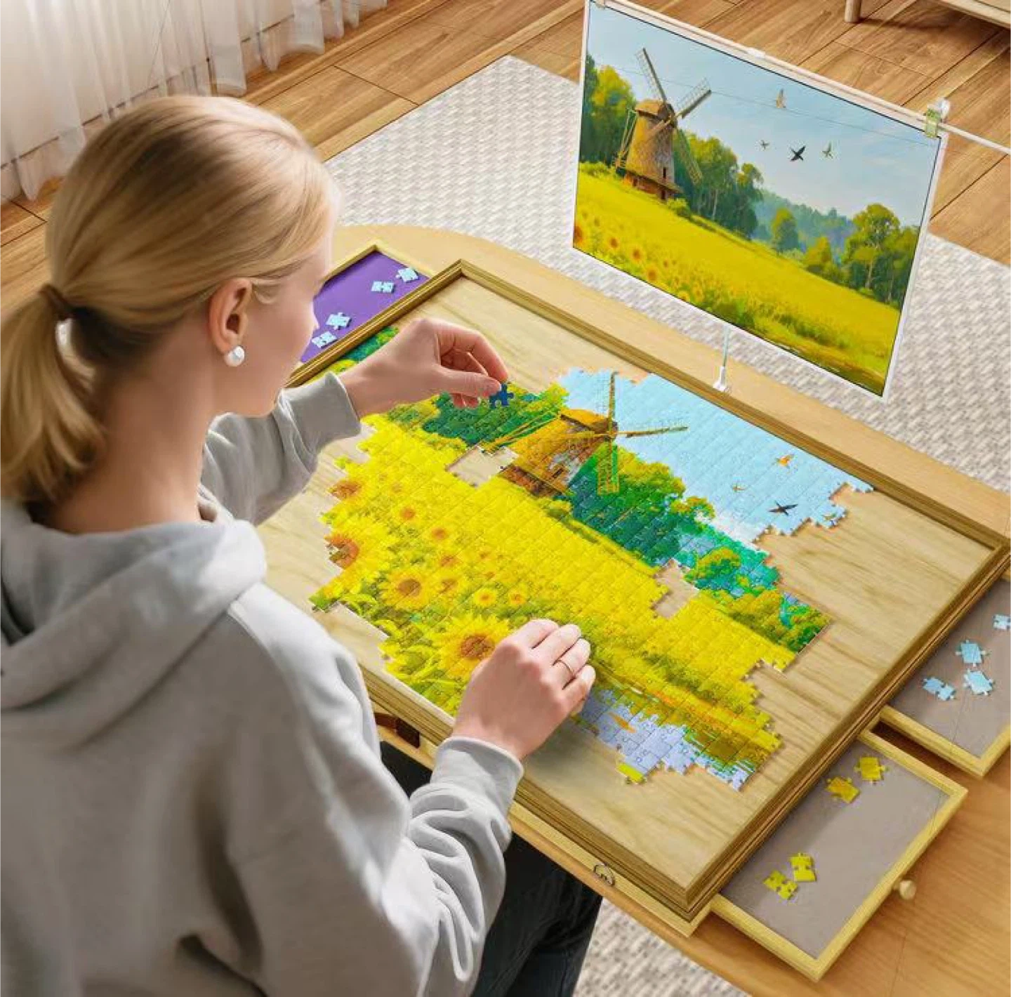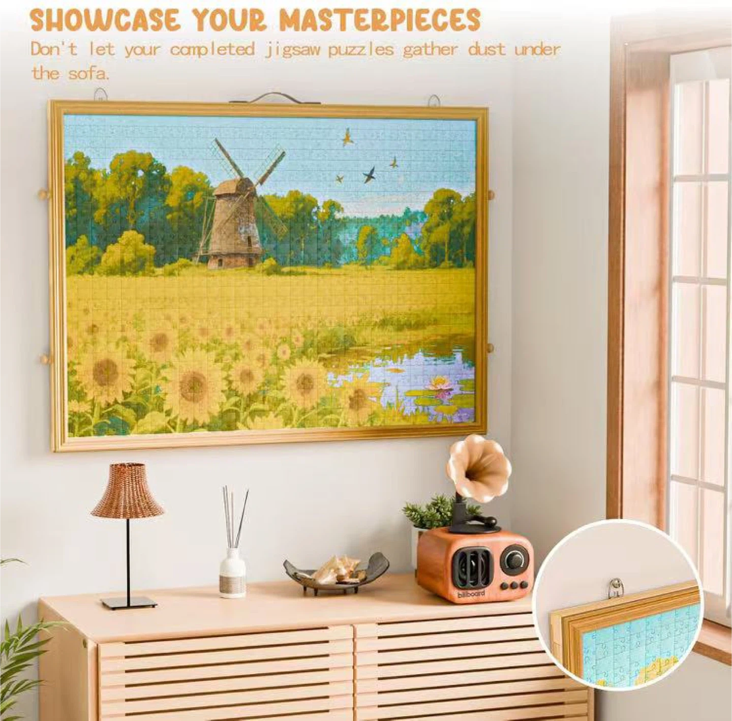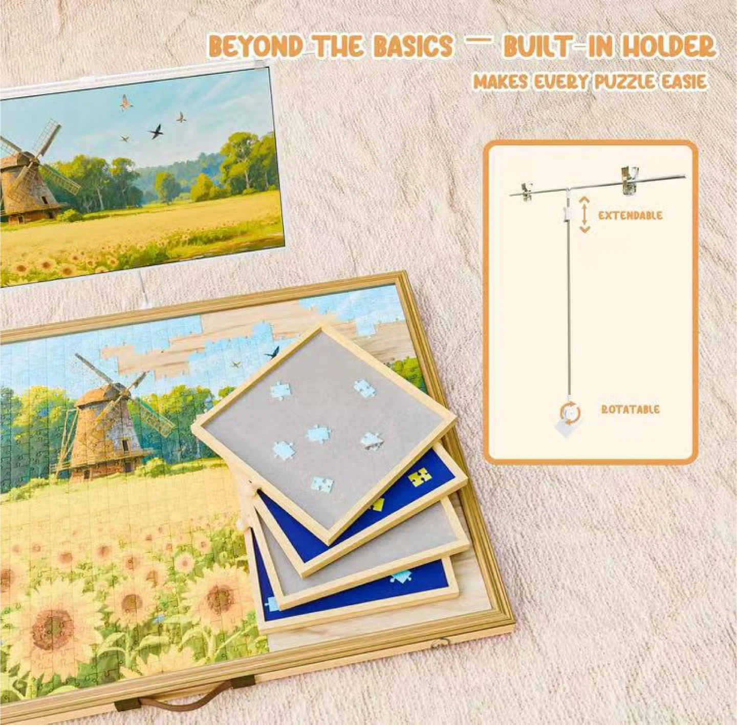 1500 Pcs Adjustable Jigsaw Puzzle Board with Drawers and Cover, 33.3 x 24.3in Rotating Puzzle Table with Lazy Susan, Frame for Wall Art Display