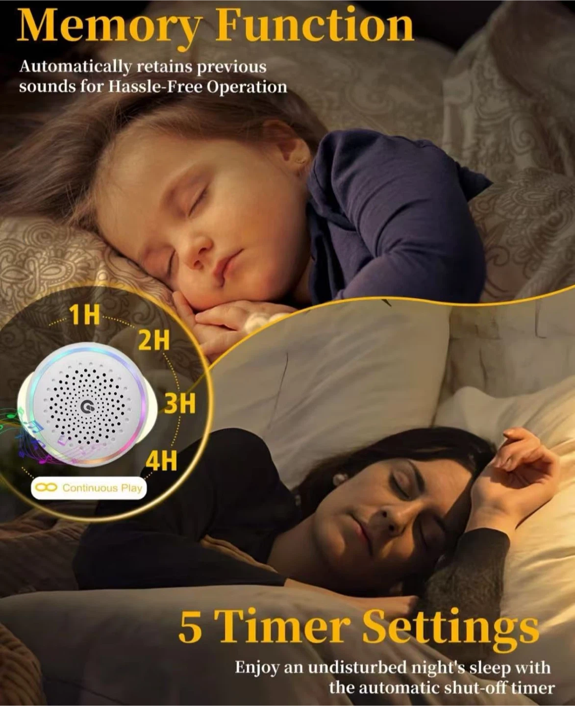 White Noise Sound Machine with 27 Soothing Sounds,Sleep Sound Timer and Memory Function - Portable Sound Machine for Baby and Adult at Home,Office,Travel and More