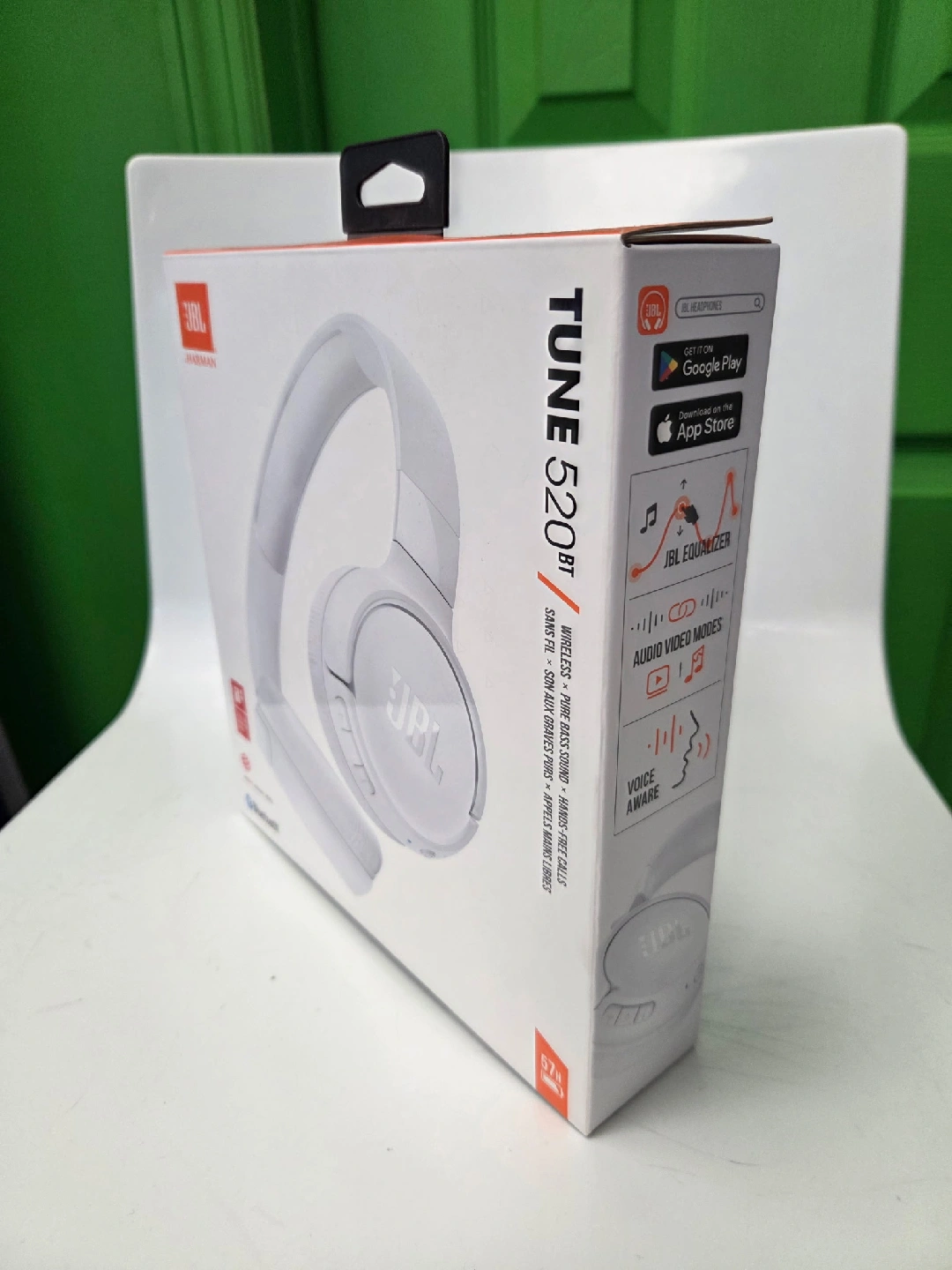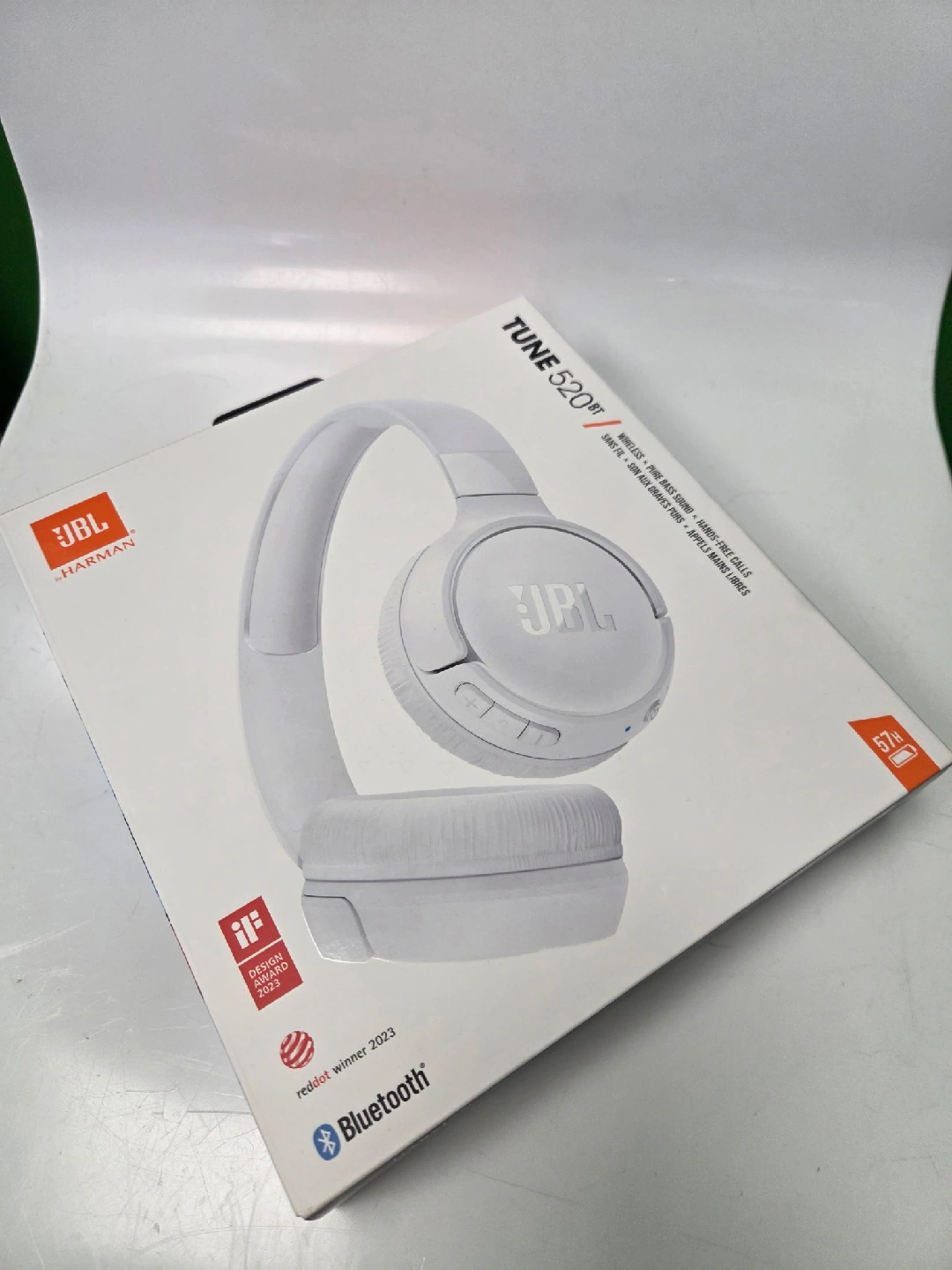 Selling a brand new pair of JBL Tune 520BT headphones in white! They are still in the box and have never been used. These wireless headphones deliver pure bass sound and hands-free calls. Perfect for enjoying audio and video movies!