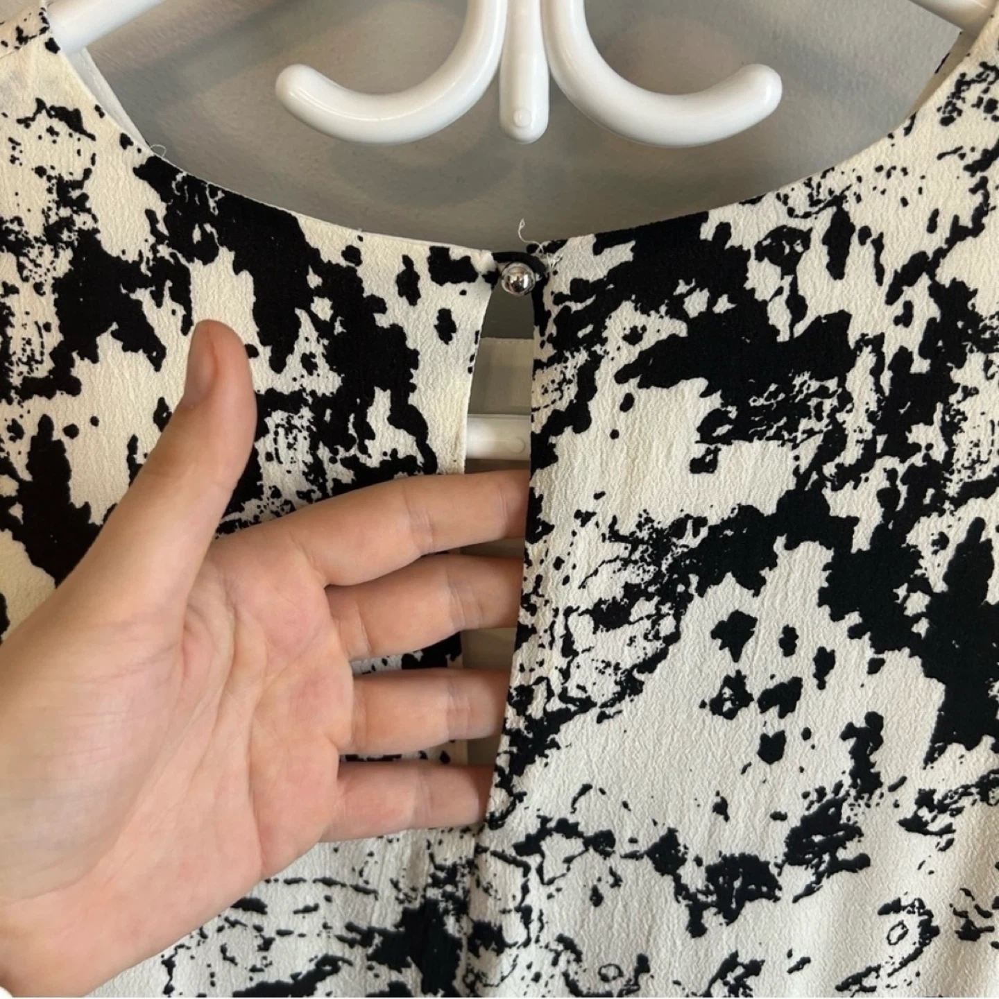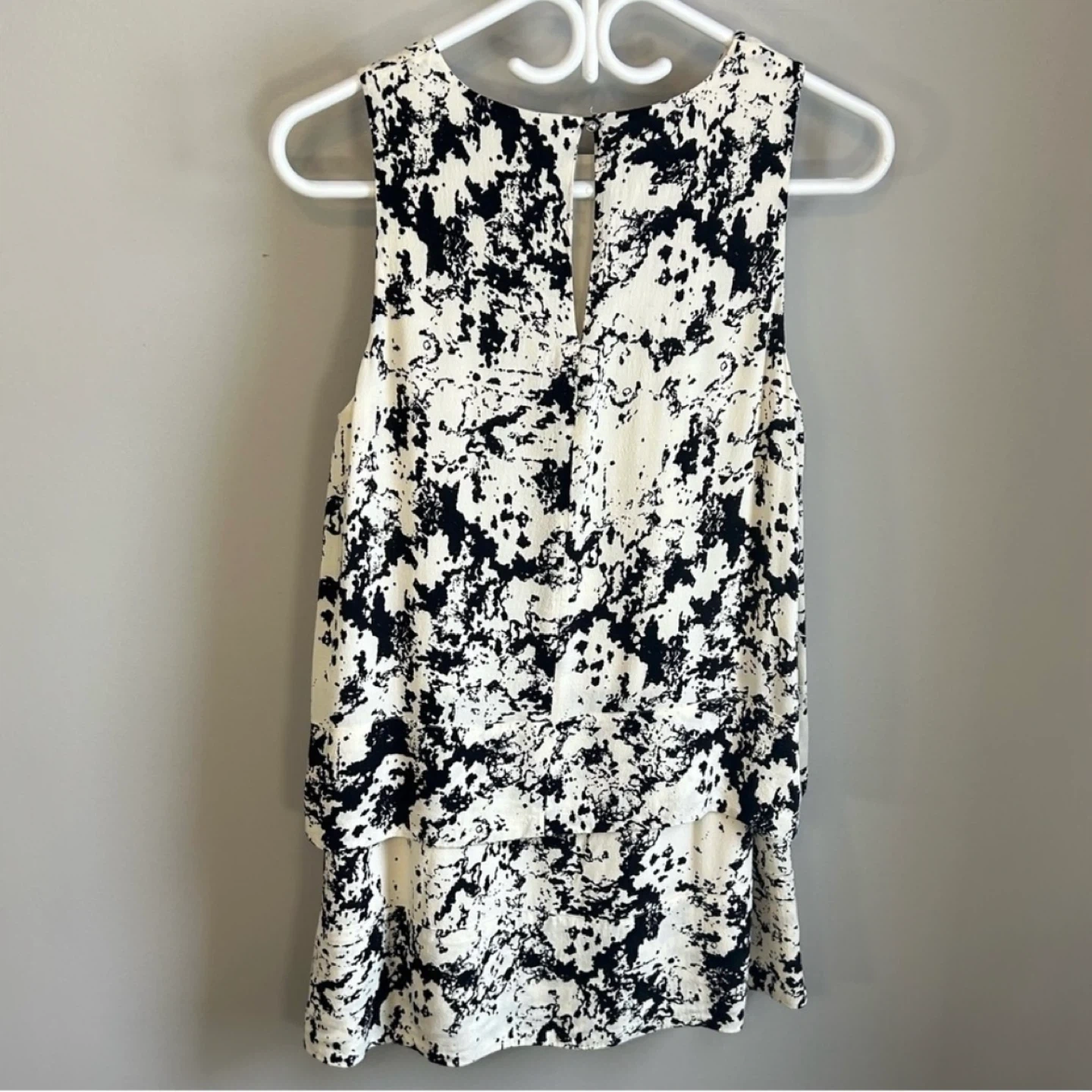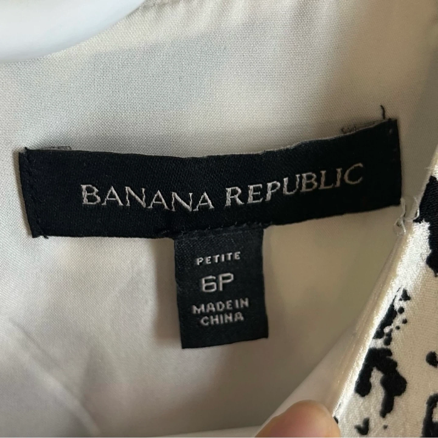 Black and white print layered shift dress from Banana Republic. Button closure at neck. Snaps at shoulders to keep bra straps in place. Hardly worn. Women ’s size 6 petite. See photos for measurements. Cross posted.