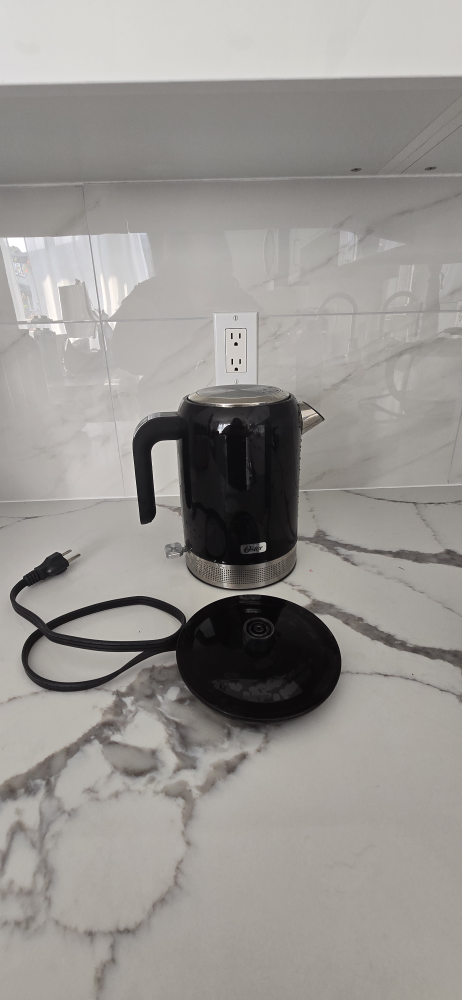 Selling a used Oster electric kettle in black. It's in good working condition and ready to heat up your water for tea or coffee. Comes with the base and lid as shown in the photos. Pick up Queensborough Area in Newwestminster