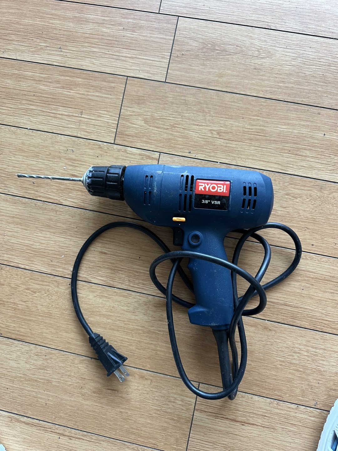 Selling a Ryobi 3/8" VSR drill. It's in used condition but still works great for various projects around the house. It's a reliable tool for drilling and driving screws.