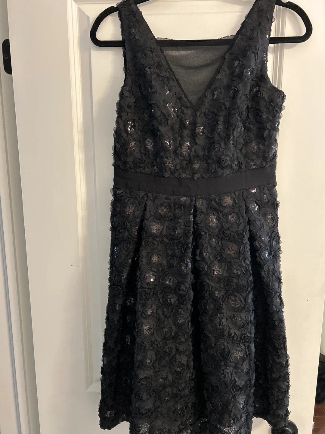 Selling a lovely black floral dress from RW&CO! It's a size 2 and features a beautiful floral design with subtle sequins. Perfect for an evening out or a special occasion or office party!!!! Pit to pit: 16” Length: 36”