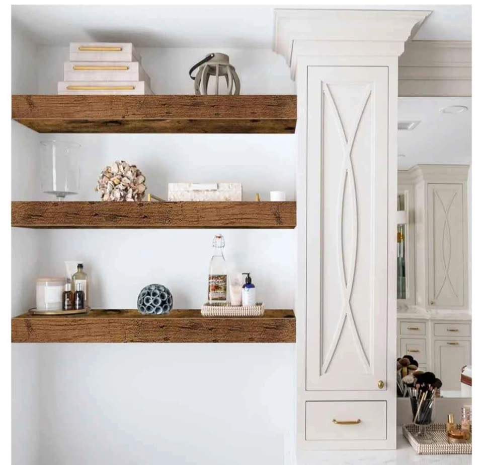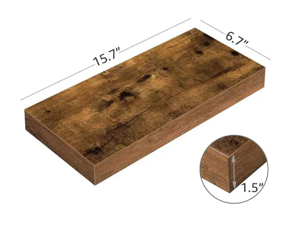 Wood Floating Shelves 16 inch, Rustic Brown color. Wide wooden wall shelves for bedroom, kitchen, bathroom , or other space.