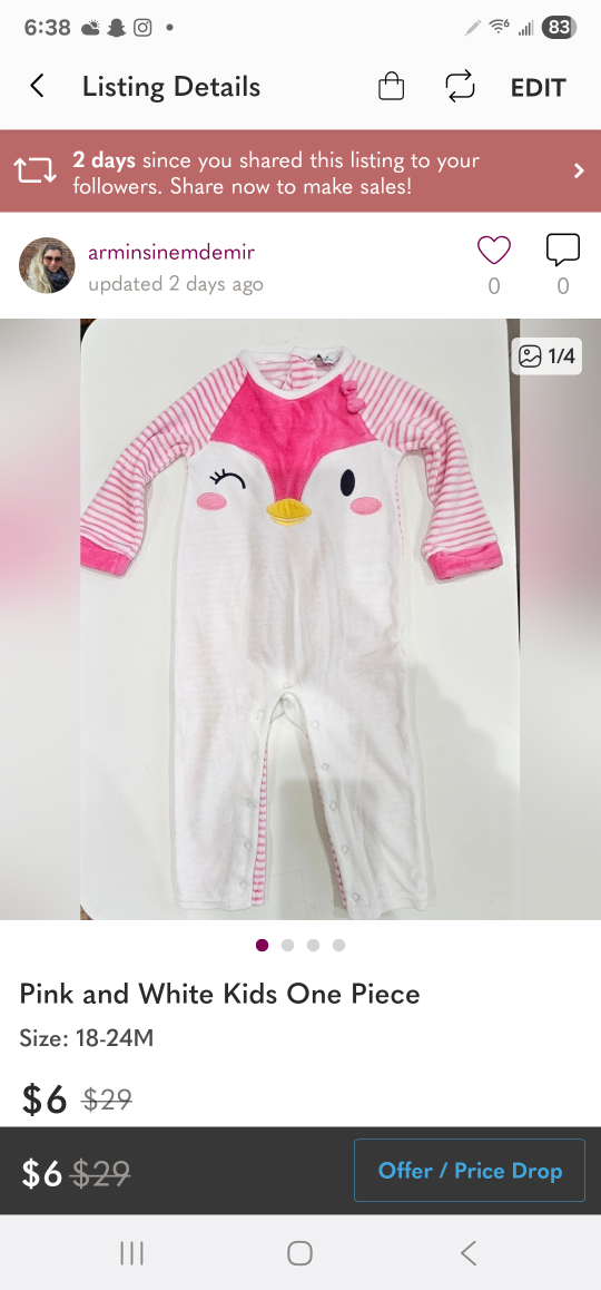 1 / 11 / 1Buy & SellPink and White Kids One Piece, Size 18-24M π₯Pink and White Kids One Piece, Size 18-24M π₯FreeSelling a cute pink and white kids one-piece outfit! It's size 18-24M and in great condition.ConditionLike newWHERE TO MEETMac Donald'sView MapSELLERverifiedarminConey Island39329 reviews0 chatsΒ·0 favoritesΒ·3 viewsSEND CHAT TO SELLERHi armin! Iβm interested in your listing.Hi armin! Iβm interested in your listing.Get the Karrot app to chatSign In to chat