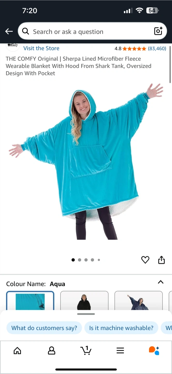 Get cozy with this Comfy Original wearable blanket in aqua! It's a sherpa-lined microfiber fleece blanket with a hood and oversized design, perfect for lounging around.