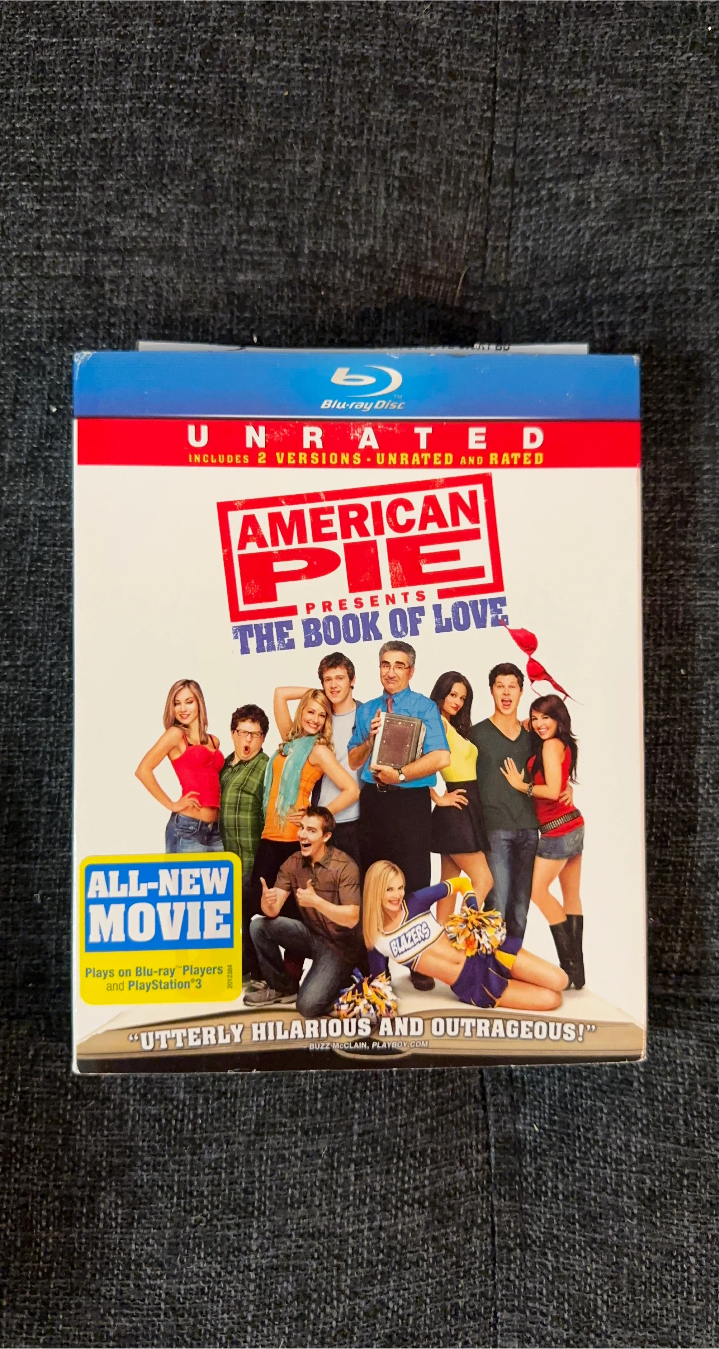 Selling the Blu-ray disc of American Pie Presents: The Book of Love! It includes both the unrated and rated versions of the movie. Plays on Blu-ray players and PlayStation 3