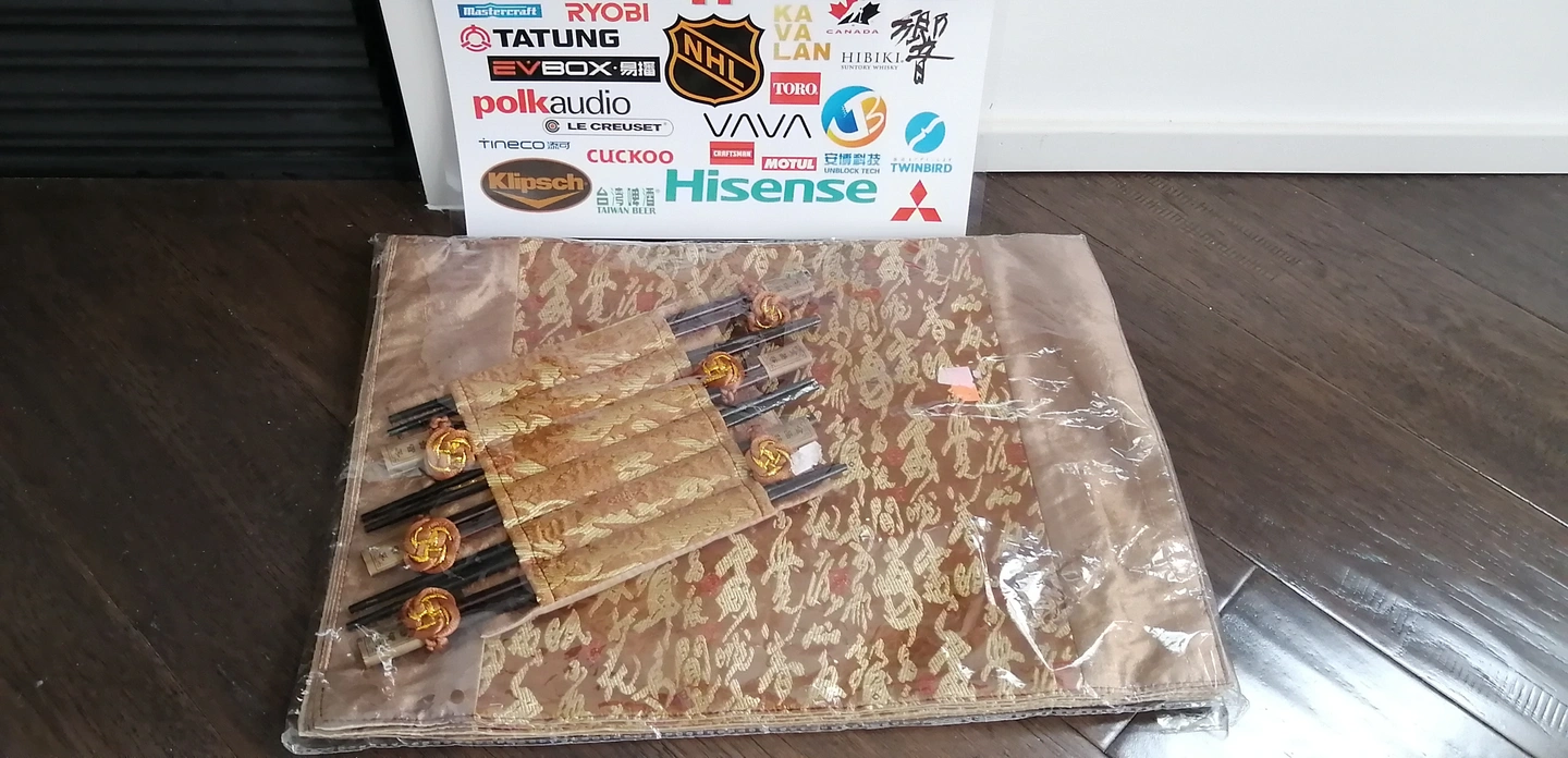 LOCATED in OSHAWA ... Ritson Road North and Taunton Road area BRAND NEW in PACKAGE Set of 6 Stitched Placements with Chopsticks in Holders Placemats measure 15" x 11" Pieces: 6 Pairs of Chopsticks 1 Chopstick Holder 6 Placemats
