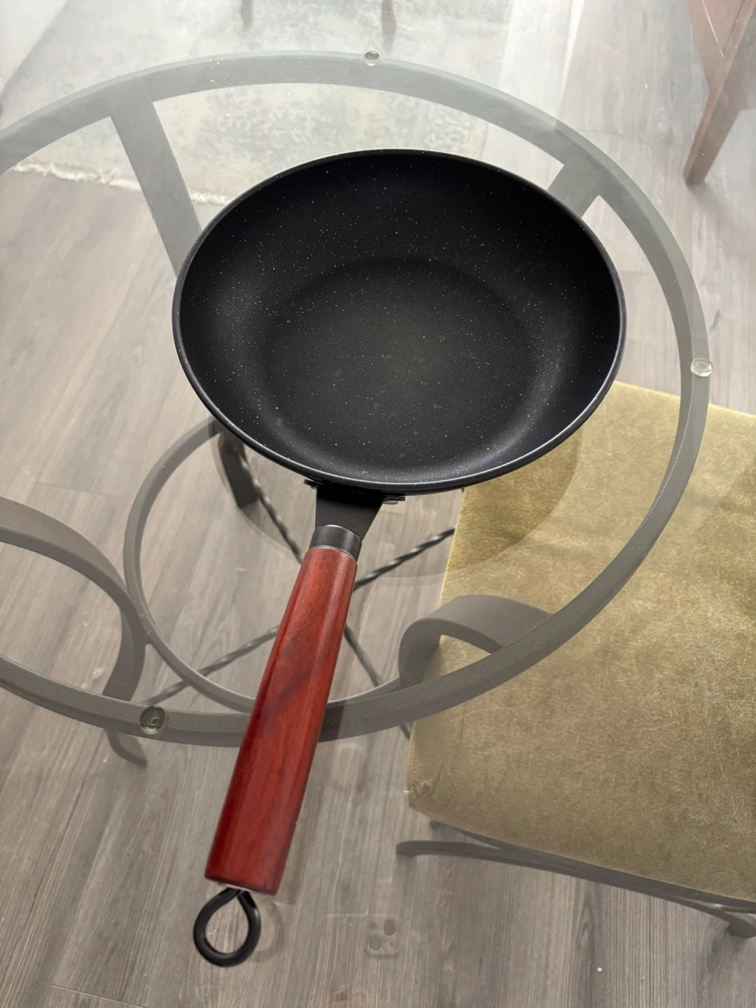 Non-stick wok with wooden handle