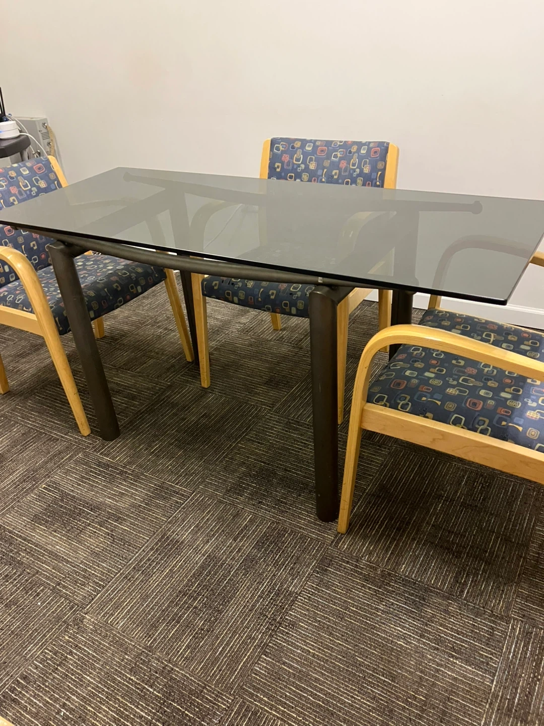 Please pick up Friday 9/19/25! Selling a glass top dining table. It features a sleek glass top and sturdy metal legs. Perfect for a dining room or kitchen space or desk! Cash and pick up only