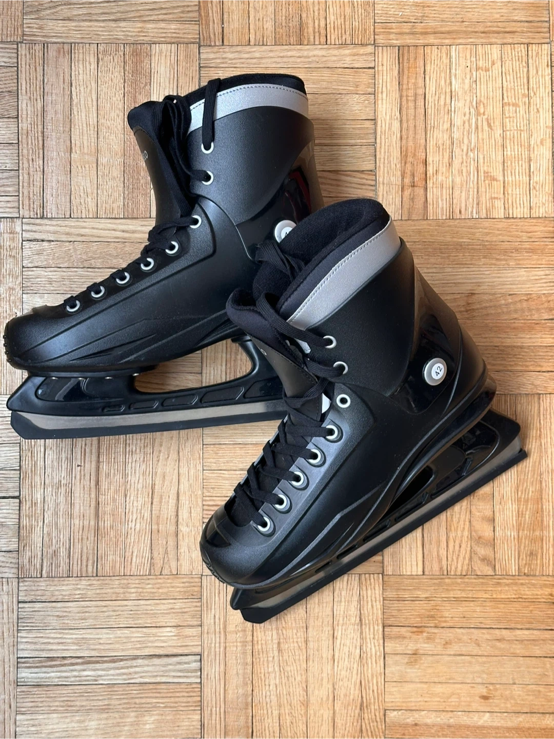 Selling a pair of Decathlon Oxelo Fit 50 ice skates in black!