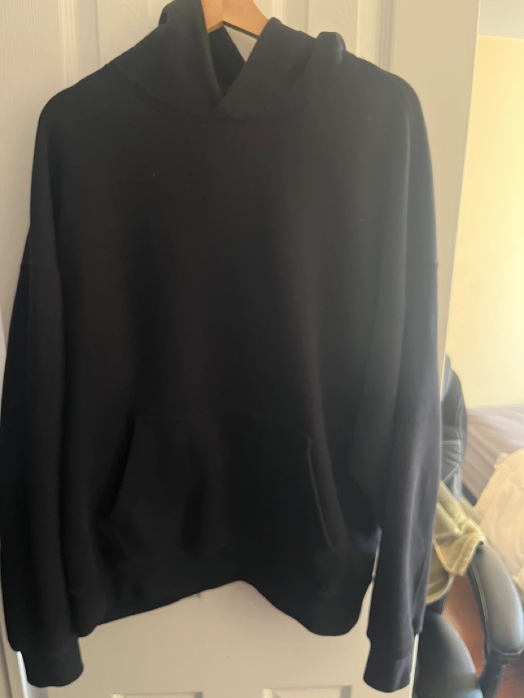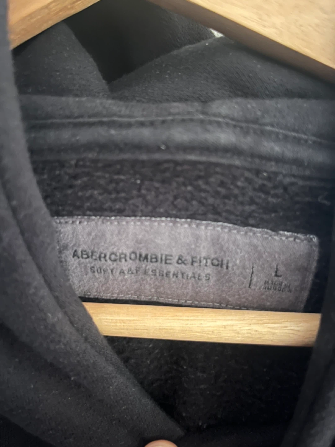 Selling a black Abercrombie & Fitch hoodie in size large. It's in great condition and super comfy for everyday wear! It's from their Soft A&F Essentials line, so you know it's soft