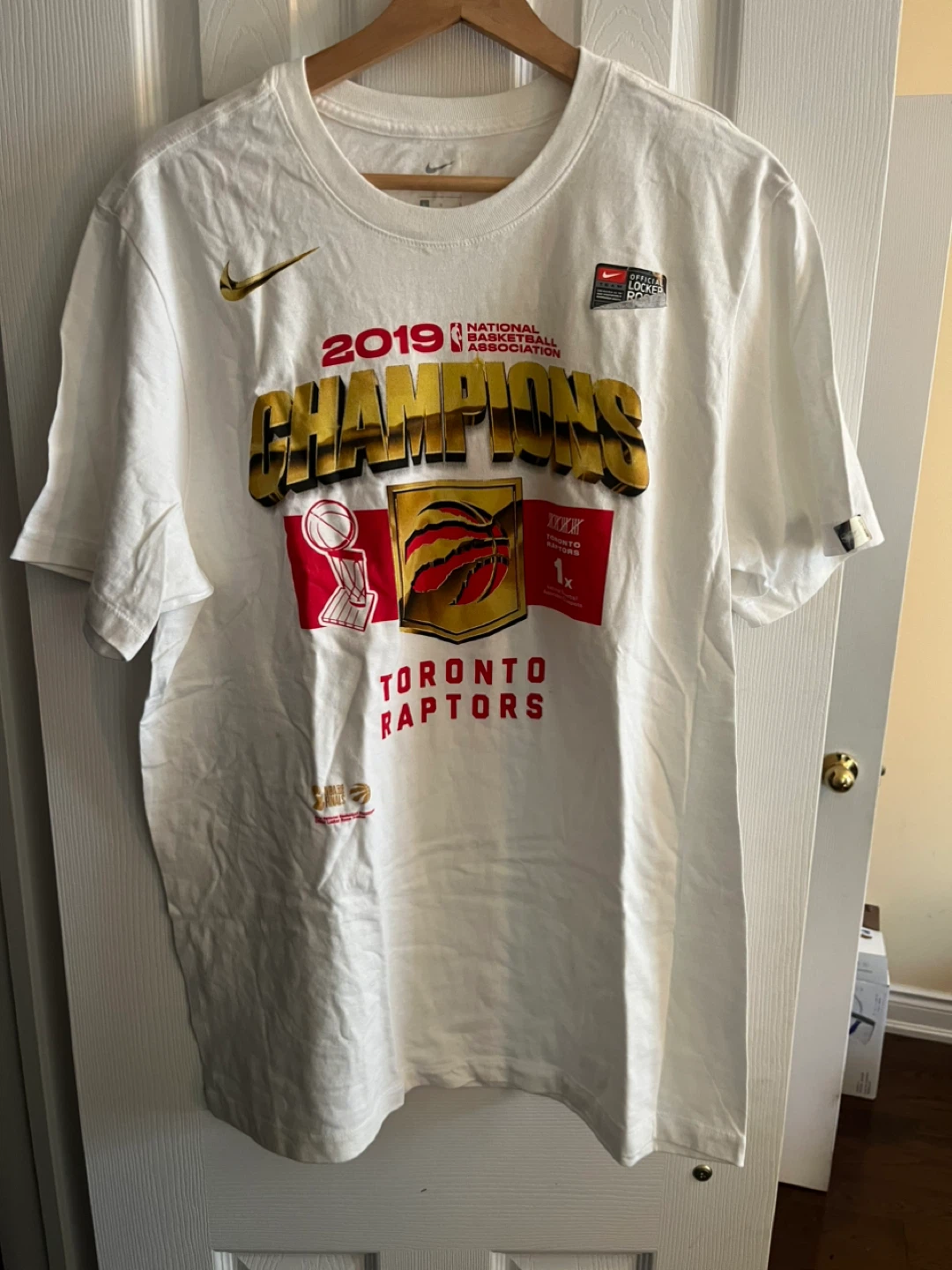 Selling a Nike Toronto Raptors 2019 Champions t-shirt! The shirt is white and features the Raptors logo with the '2019 Champions' design. Great for any Raptors fan!