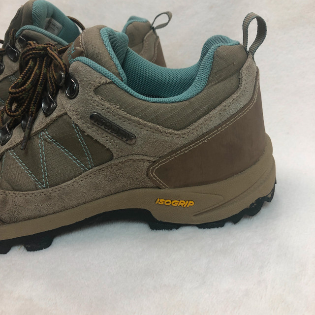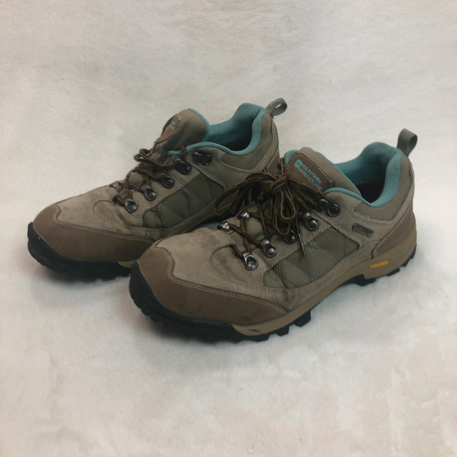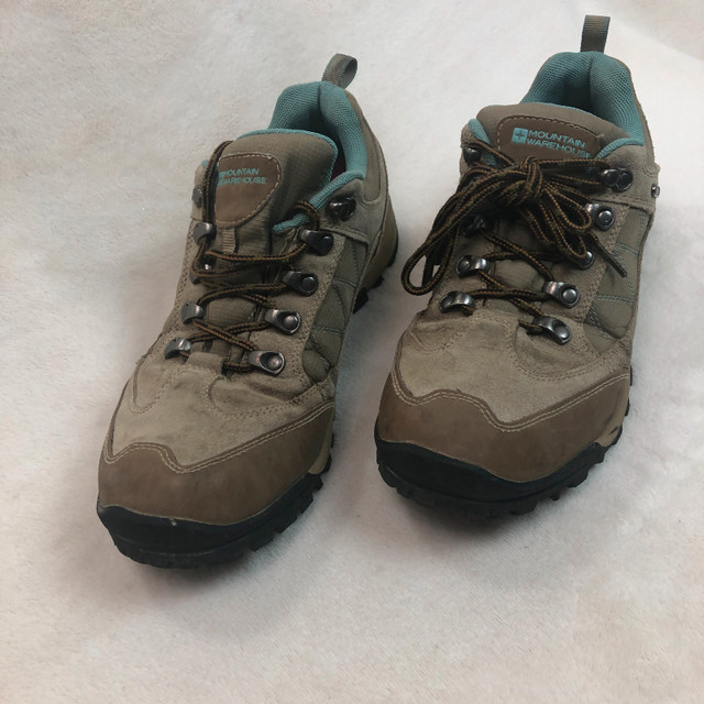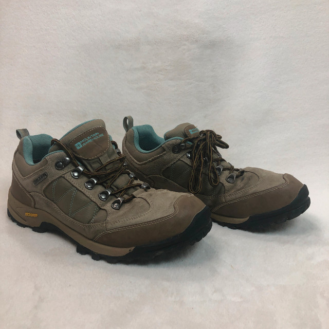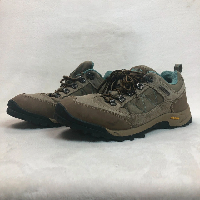 Available for pick-up in SW Airdrie or Inglewood SE Calgary on weekdays. The Mountain Warehouse Women's Extreme Storm Waterproof Shoes in size 10 US are perfect for hiking adventures. These mid-top boots feature a hook & eye closure, solid brown color, and eyelet accents. With a standard shoe width and a waterproof design, they provide both style and functionality for outdoor activities. Whether you're trekking through rugged terrain or exploring the wilderness, these durable athletic shoes will keep you comfortable and protected. Made by Mountain Warehouse, a trusted brand known for quality outdoor gear, these sneakers are a reliable choice for any outdoor enthusiast.