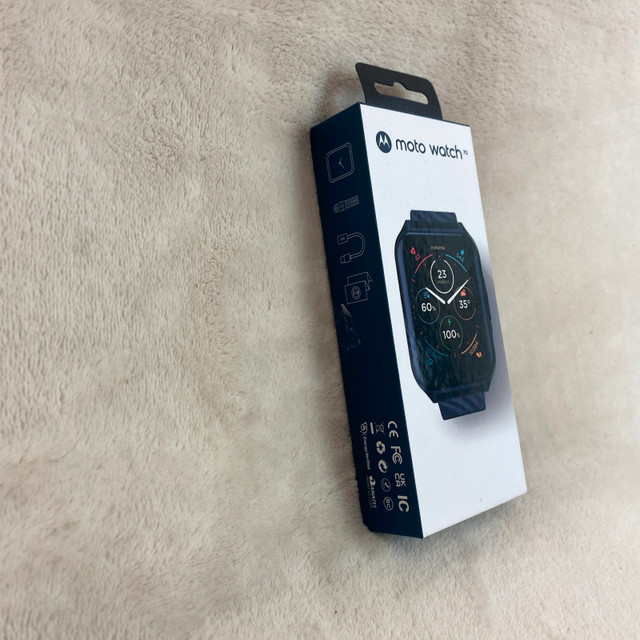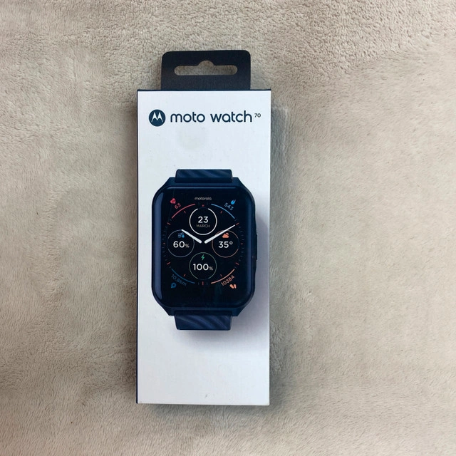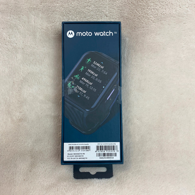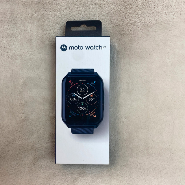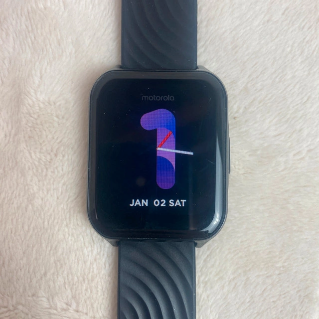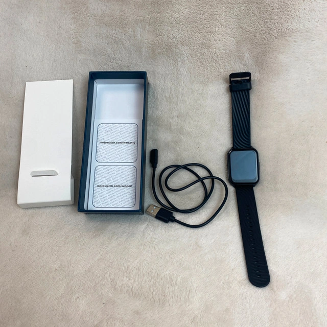 In good used condition. Please see photos for the condition with normal wear from use. Check my other listings, you may find what you’re looking for. Available for pick-up in SW Airdrie or Freeport Blvd NE Calgary on weekdays. Experience seamless connectivity and convenience with the Motorola Moto Watch 70. Designed to complement your Android device, this smartwatch is a perfect accessory for those who value efficiency and style. Its bold 43 mm black case pairs effortlessly with the matching black silicone band, offering both durability and comfort for everyday wear. The Moto Watch 70 is not only a stylish statement piece but also a functional tool, featuring water resistance for those on-the-go activities. Whether you're tracking your fitness goals or staying connected with notifications, this watch is equipped to keep up with your dynamic lifestyle.