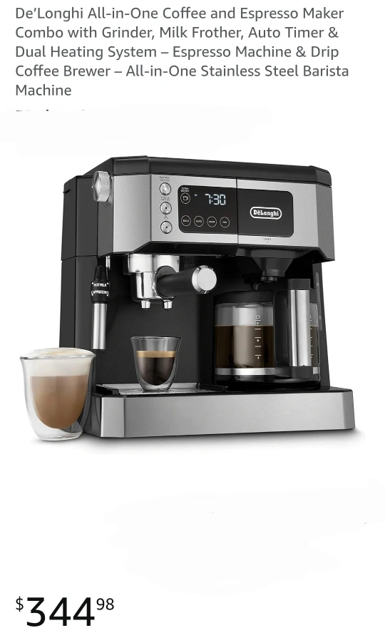 Looking to sell my De'Longhi All-in-One Coffee and Espresso Maker Combo. It comes with a grinder, milk frother, auto timer, and dual heating system. This is both an espresso machine and a drip coffee brewer, so it's perfect for any coffee lover. Originally bought for $344.98