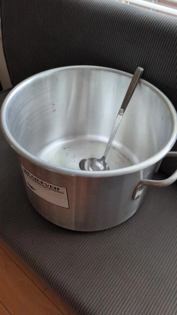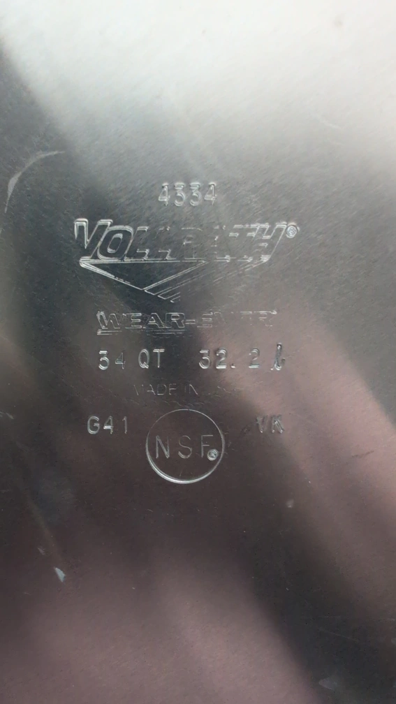 Selling a Vollrath Wear-Ever commercial cookware pot. It's a 34 quart pot, perfect for large batches of soups, stews, or sauces. It's in great shape and ready for a new kitchen!